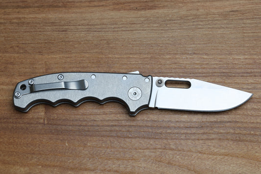 DEMKO KNIVES MG AD20 FG SMOOTH FINGER GROOVED TITANIUM HANDLES STONEWASH CLIP POINT CPM-3V BLADE