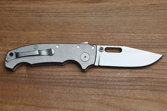 DEMKO KNIVES MG AD20 SMOOTH TITANIUM HANDLES STONEWASH CPM-3V CLIP POINT BLADE