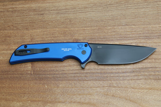 KOENIG KNIVES ARIUS - CORDA TITANIUM HANDLE - BLUE HARDWARE - BURNISHED W/ POLISHED FLATS M390 BLADE