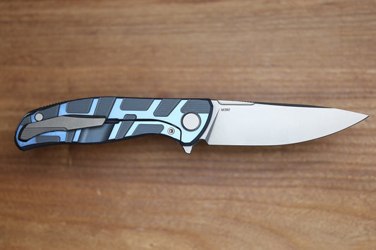 SHIROGOROV F95 T PATTERN GEN. 4 - BLUE TITANIUM HANDLE - M390 BLADE - MRBS