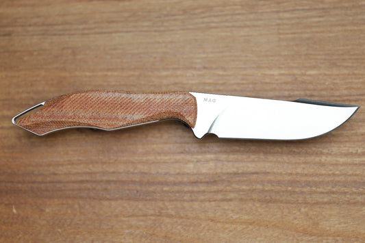 KOENIG KNIVES HELO - TAN CANVAS PATTERNED MICARTA HANDLE - BRIGHTWASHED MAGNACUT BLADE