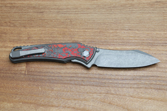 HAWK KNIVES TALON STONEWASHED M390 BLADE, LAVA FLOW FAT CARBON