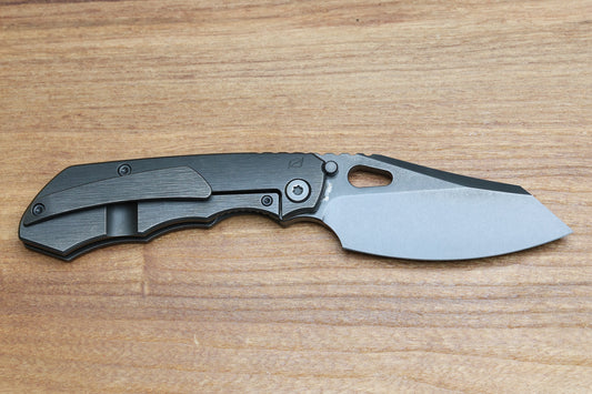 CUSTOM KNIFE FACTORY & ROTTEN DESIGN EVO 1.1 BLACKWASH TI HANDLES W/ M398