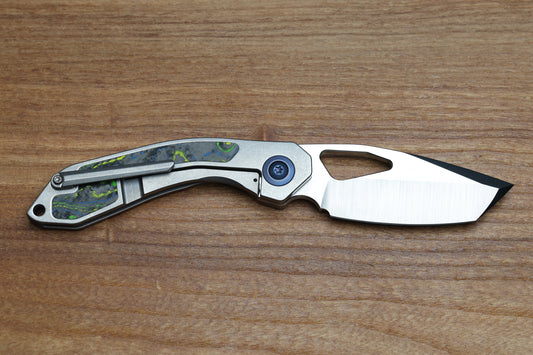 KEANISON KNIVES BULL TERRIER TITANIUM HANDLE GECKO CAMOCARBON INLAY 3.3" 20CV BLADE #123