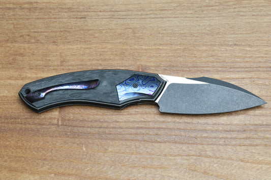 CUSTOM KNIFE FACTORY DAVLESS CARBON FIBER & ZIRCUTI W/ TWO TONE BLACKWASH S90V (PREOWNED)