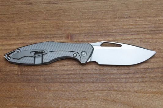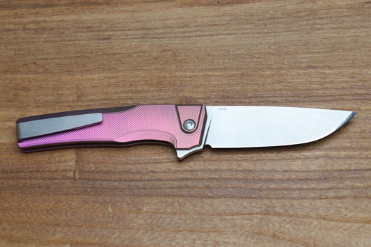 KOENIG KNIVES MINI ARIUS - NON FLIPPER - CORDA TITANIUM HANDLE - SILVER HARDWARE - BURNISHED W/ POLISHED FLATS M390 BLADE