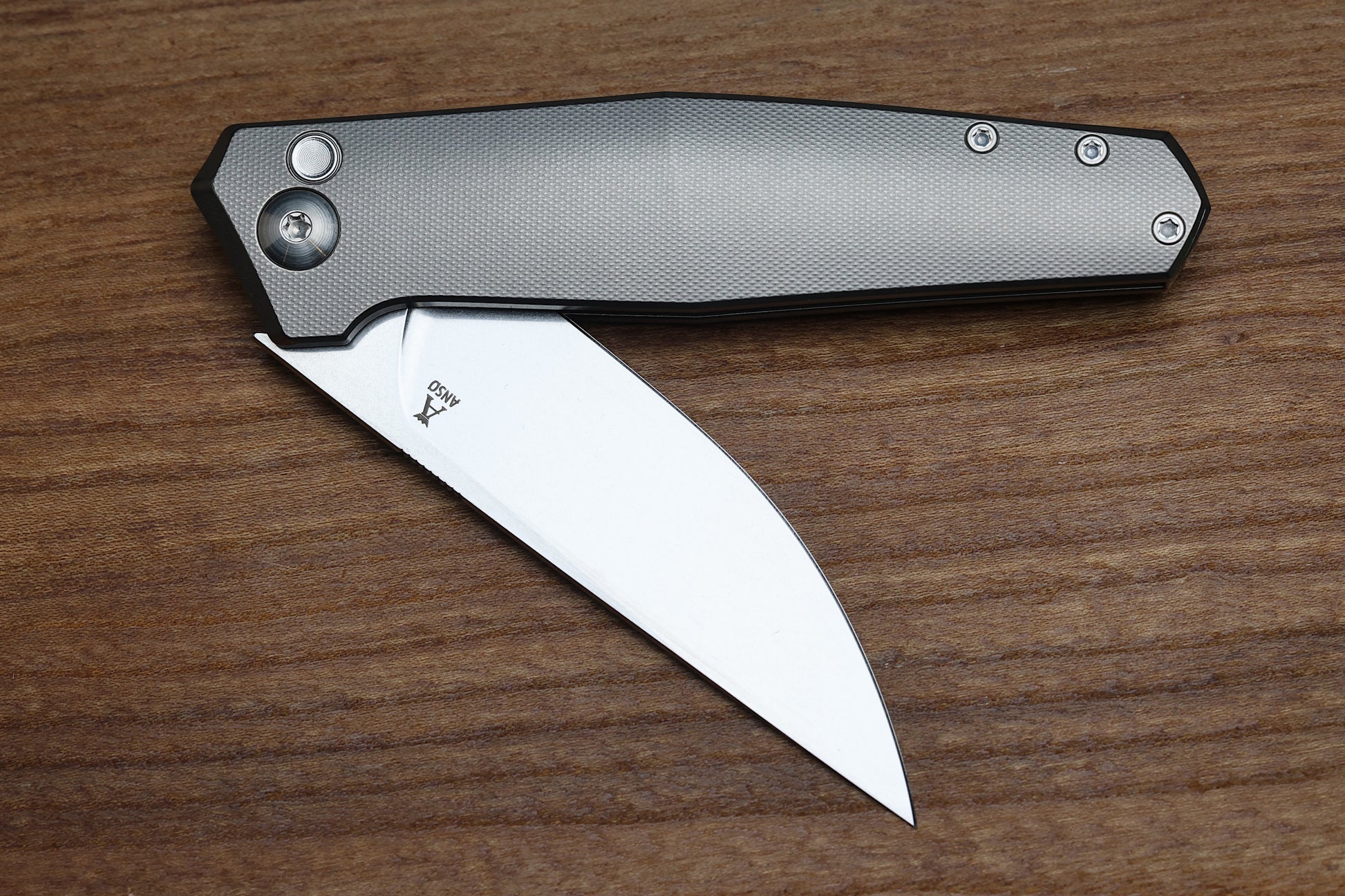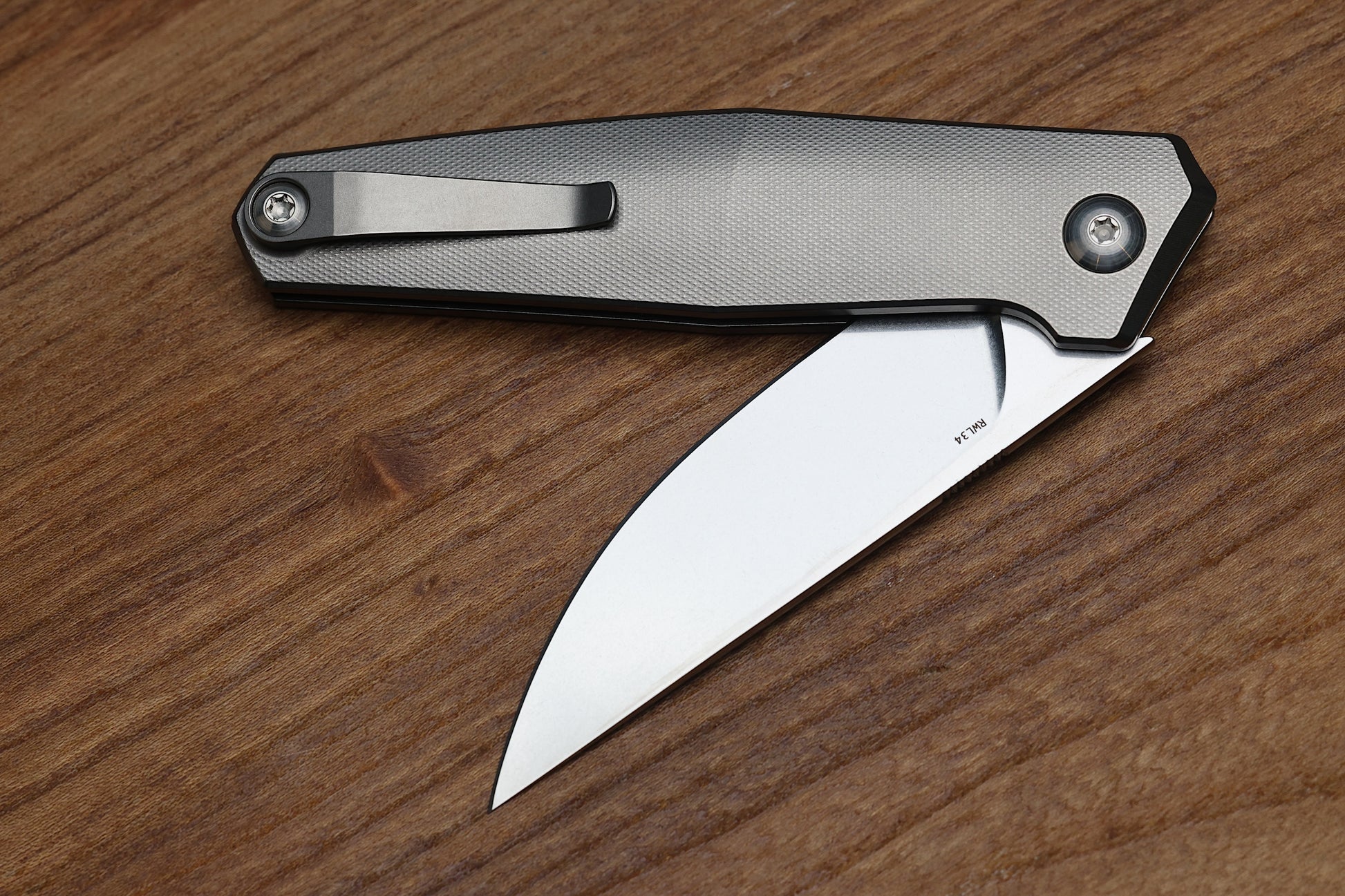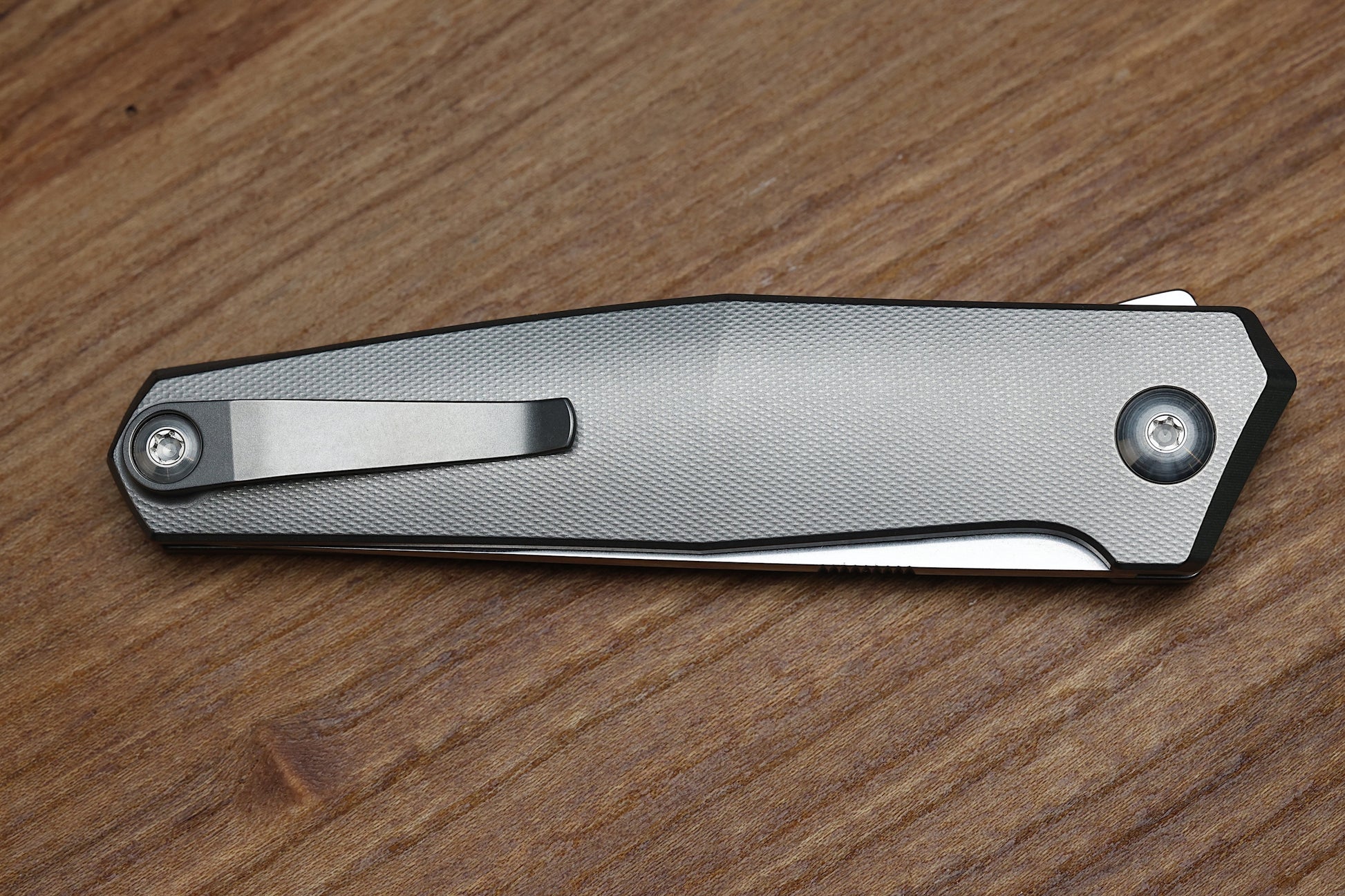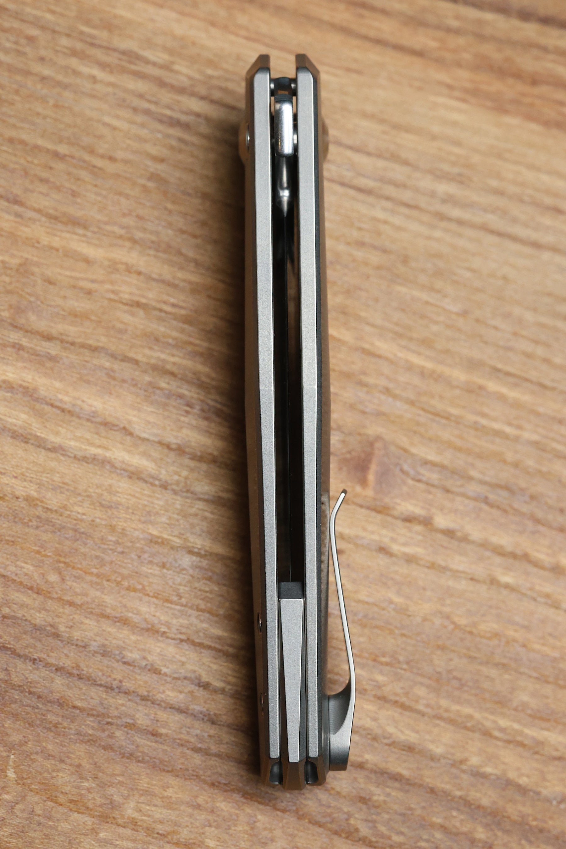 - Grey finish Titanium handle scales with fine textured milling pattern