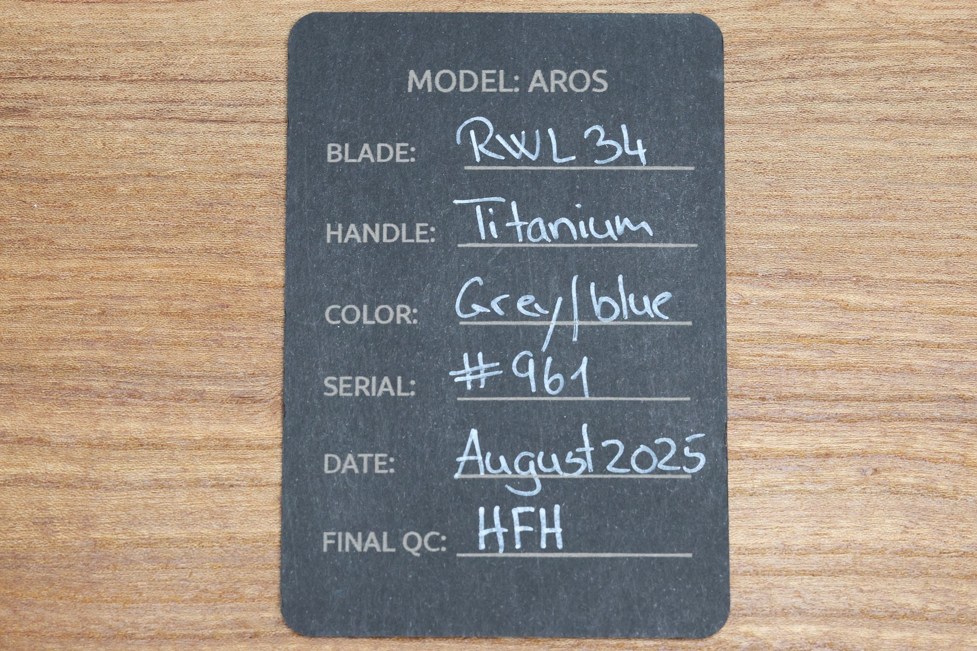ANSO OF DENMARK AROS - GREY/BLUE TITANIUM HANDLE - RWL34 BLADE