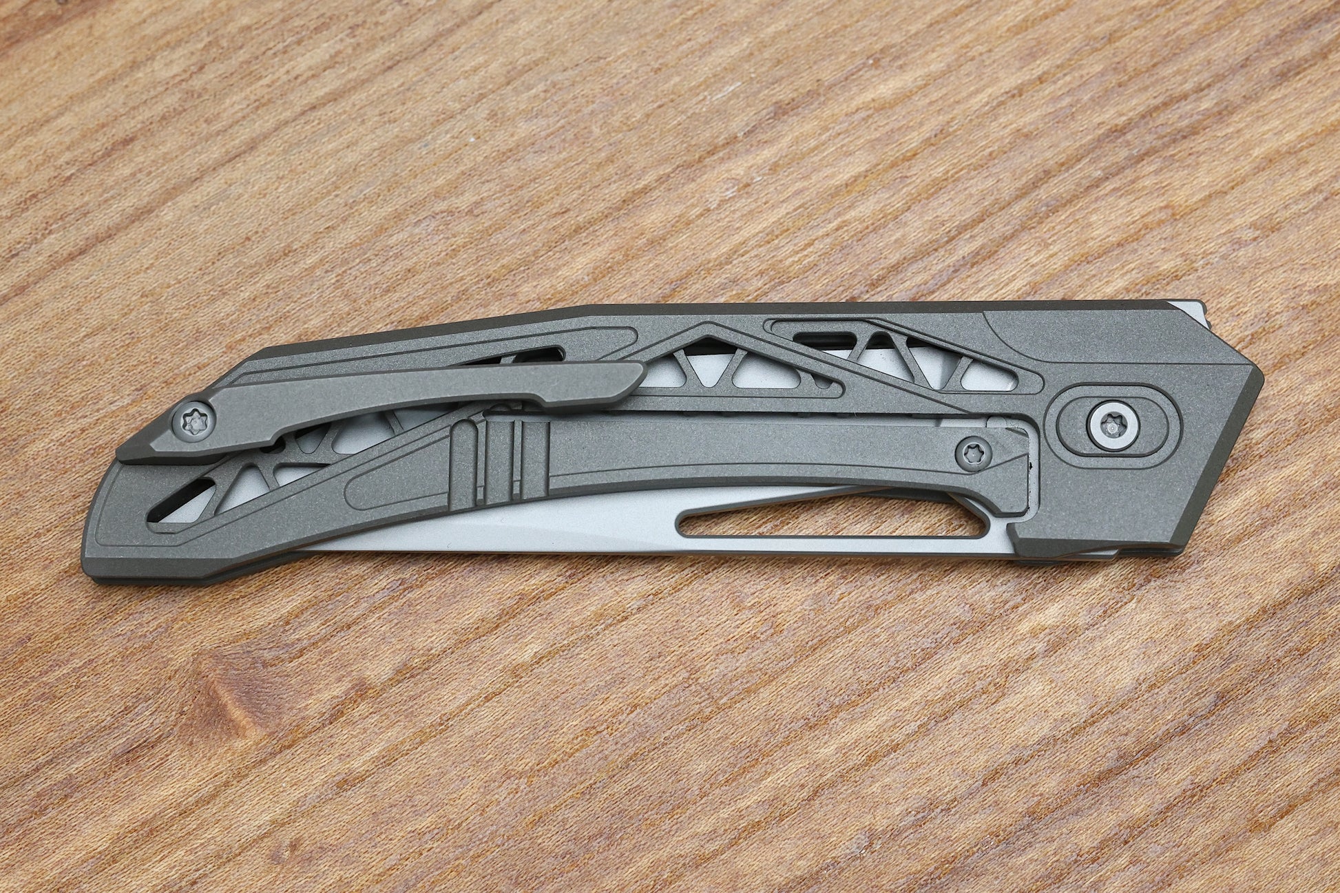 - Bead blasted finish Titanium hardware and pivot screws