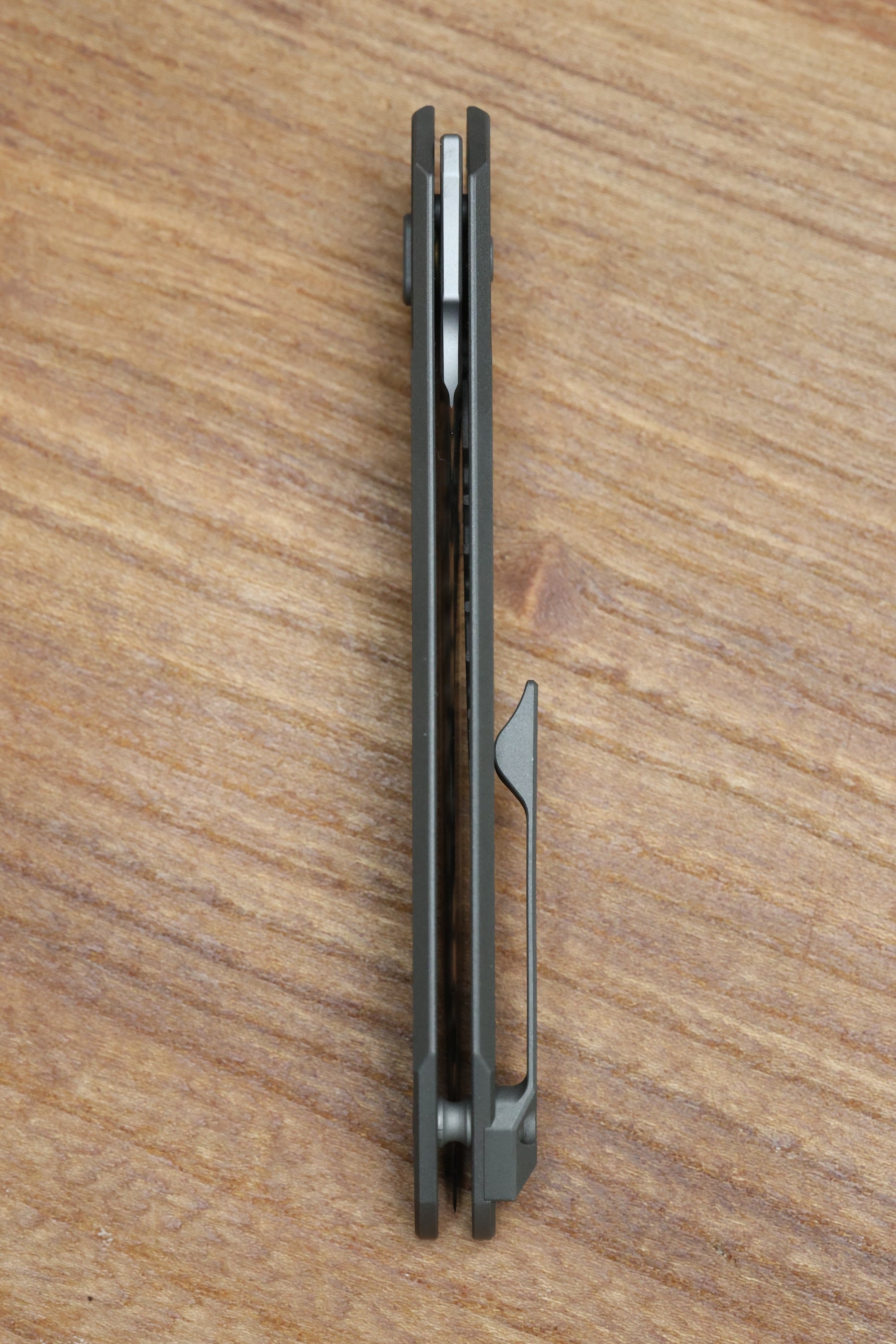 - Tip up dark bead blasted finish Titanium pocket clip