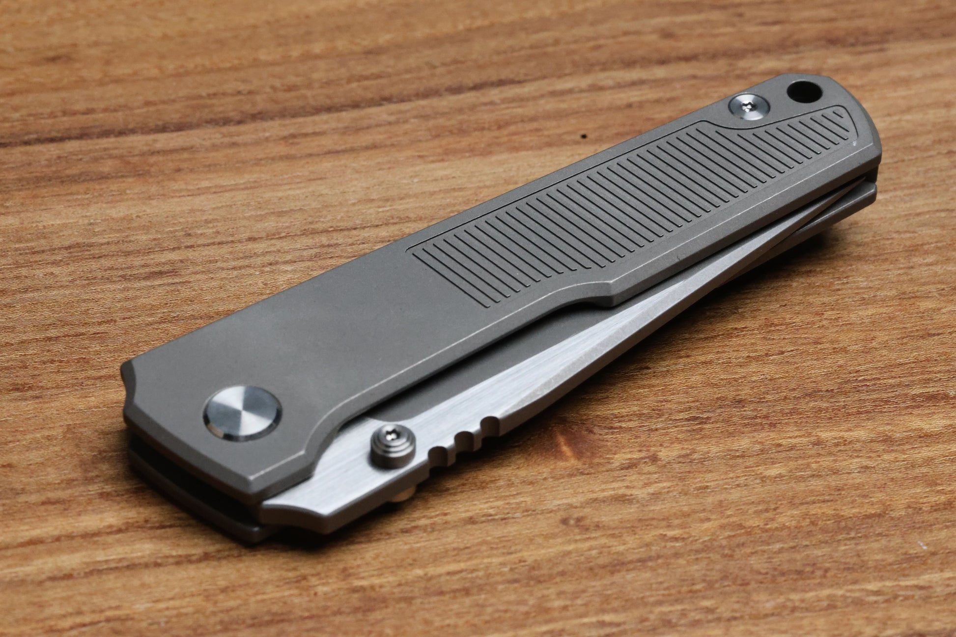 - Titanium frame lock with a stainless lock bar insert