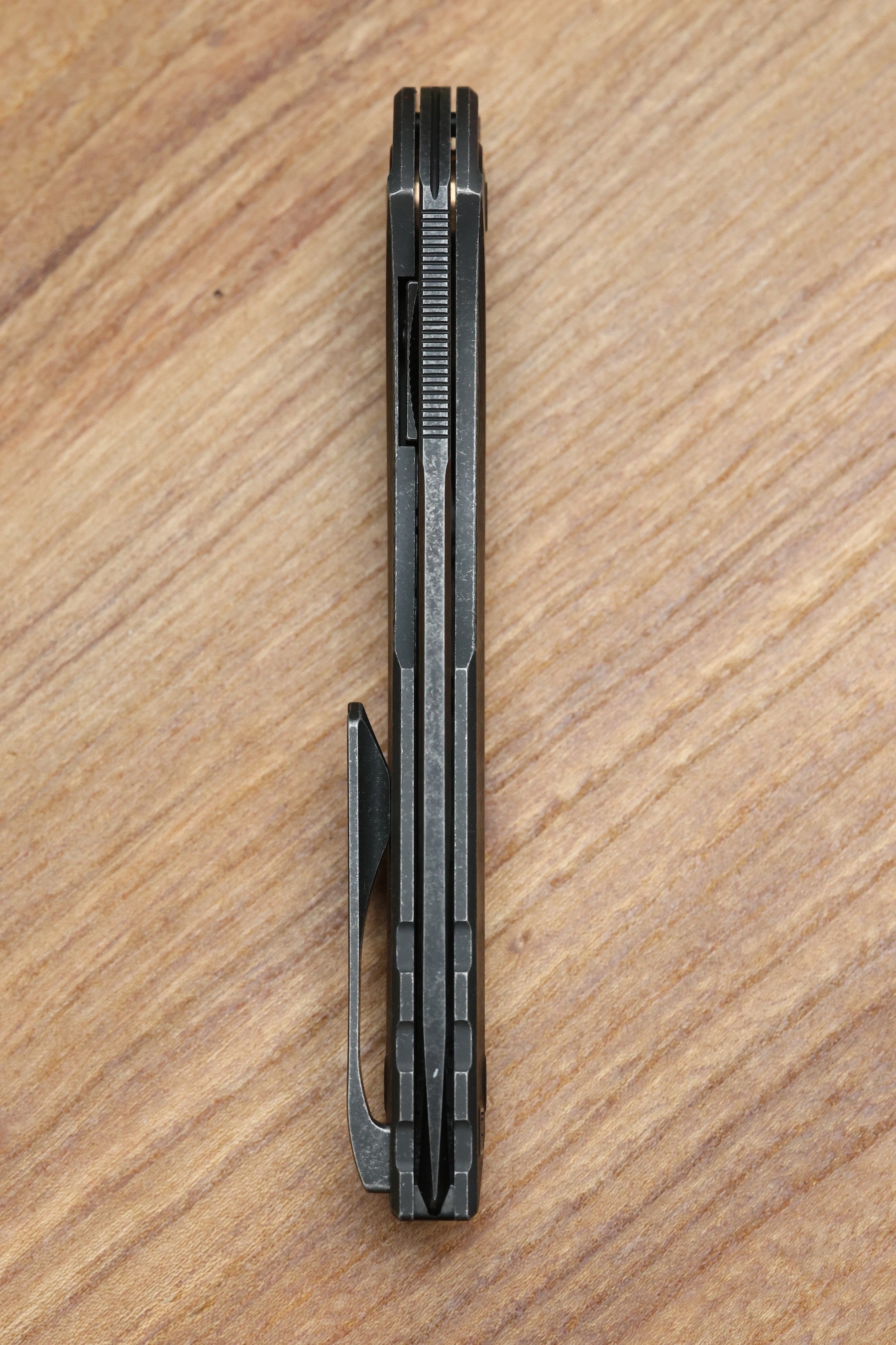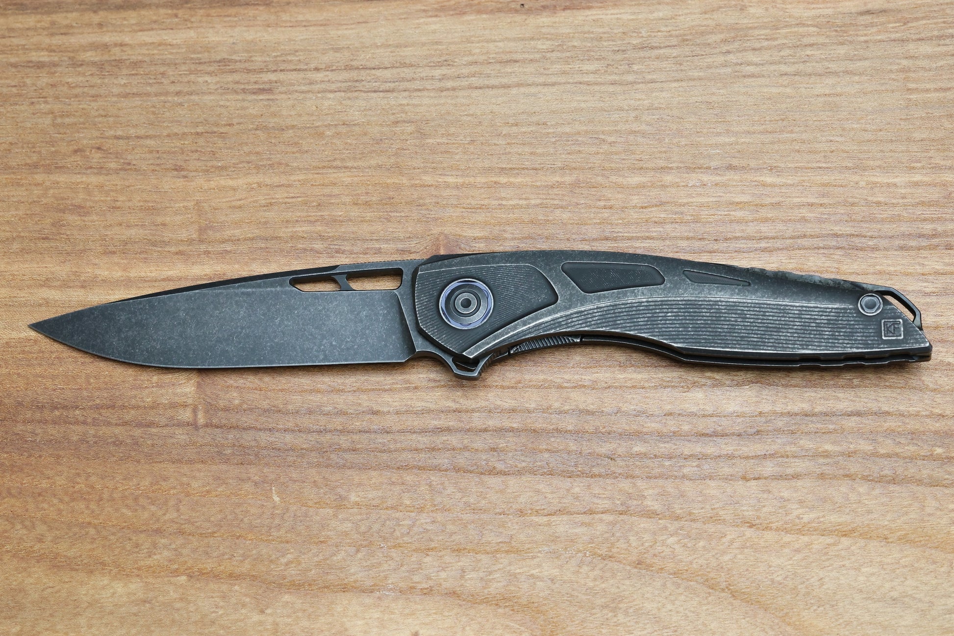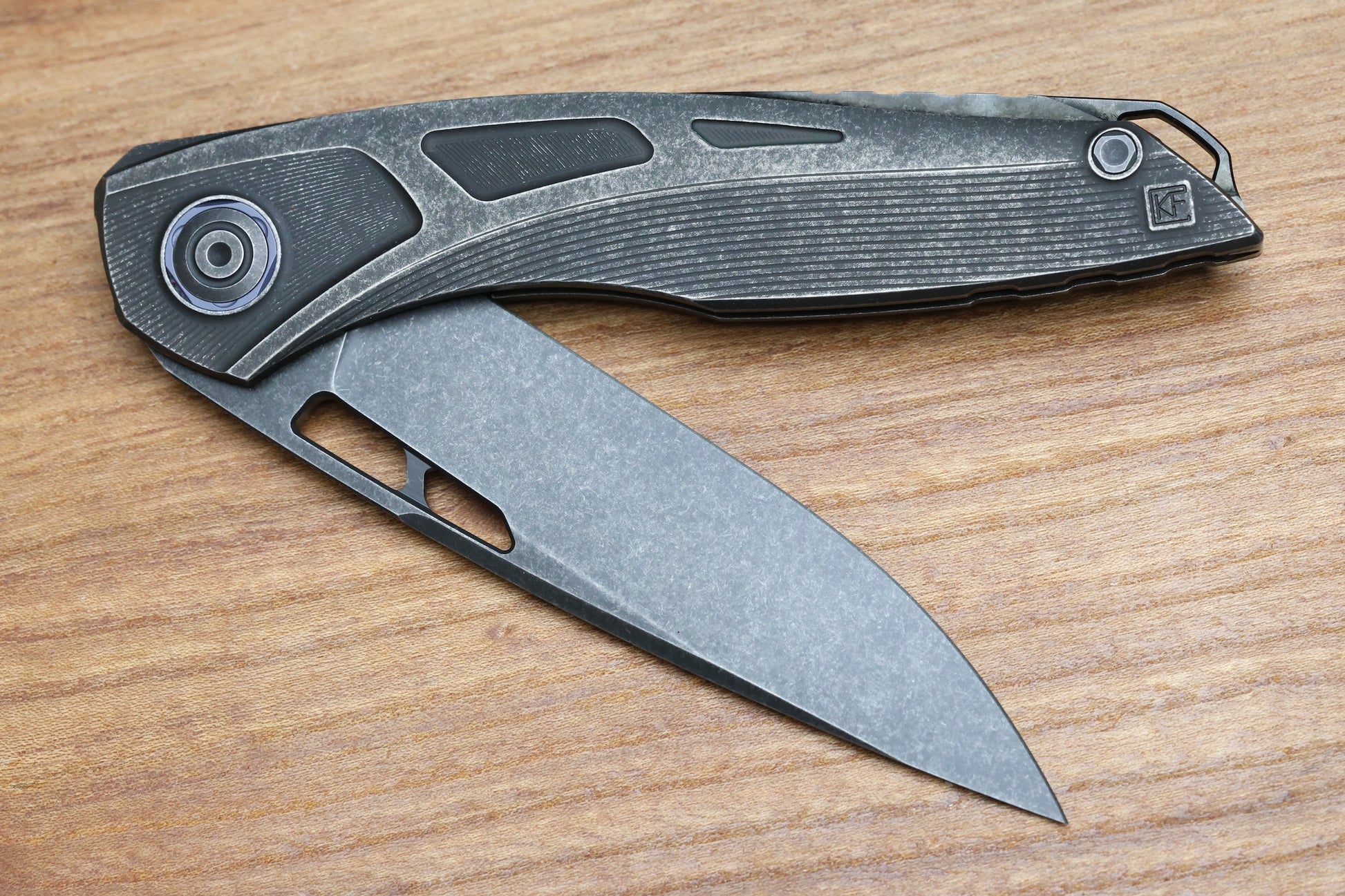 CUSTOM KNIFE FACTORY SUKHOI-5 BLACKWASH TITANIUM HANDLES W/ CRYSTAL TI BACKSPACER & M398