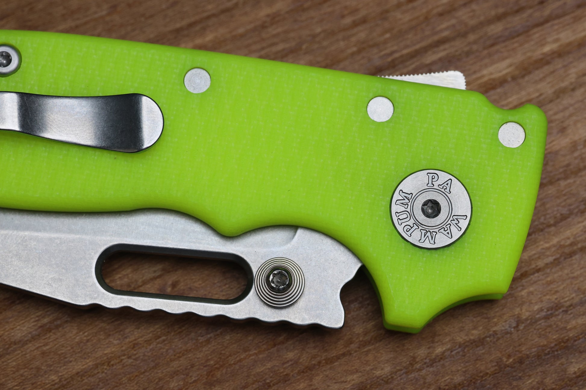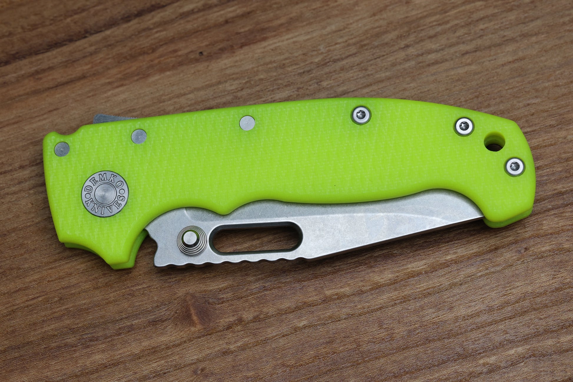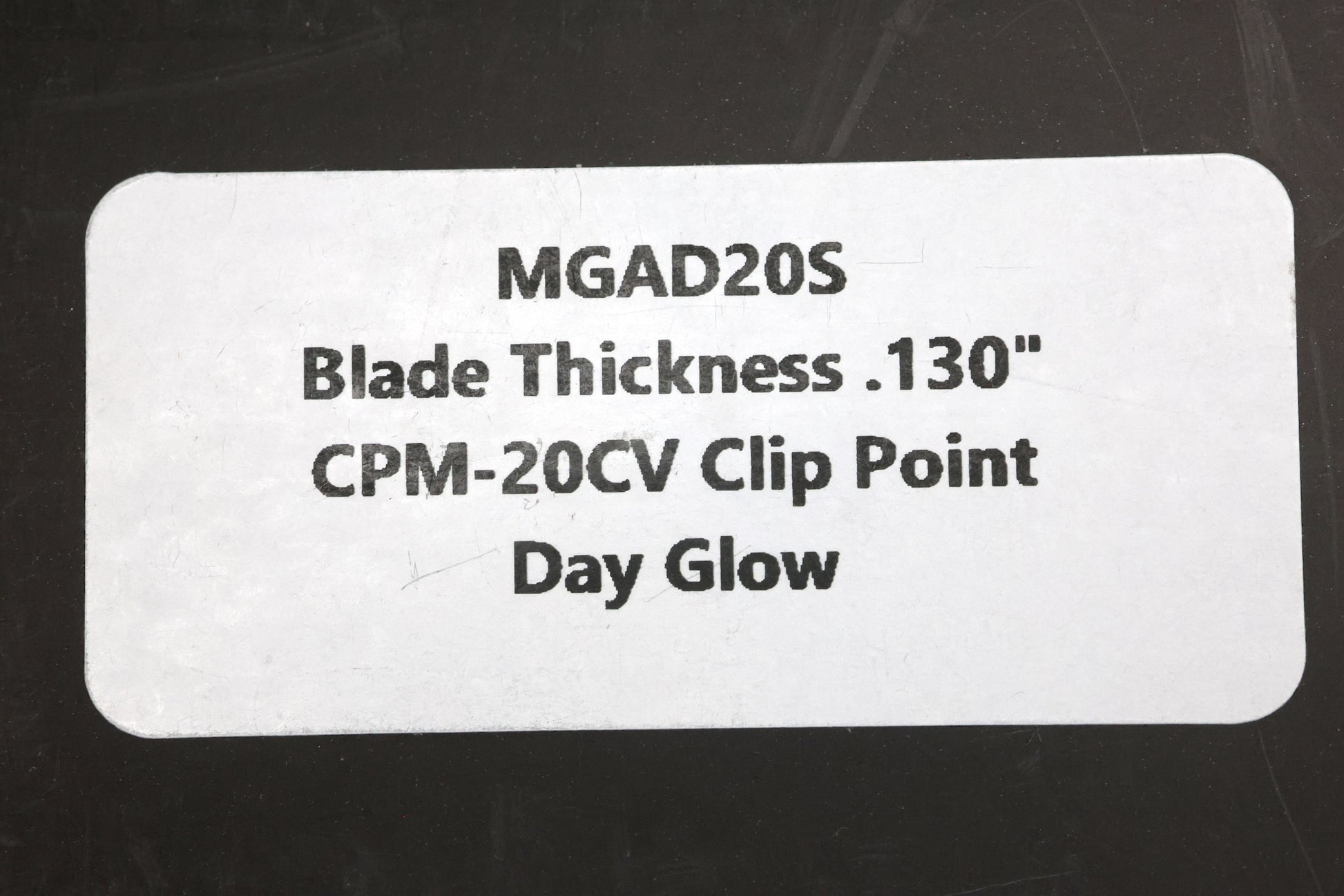 DEMKO KNIVES MG AD20S W/ TEXTURED DAY GLOW G10 HANDLES & 20CV CLIP POINT