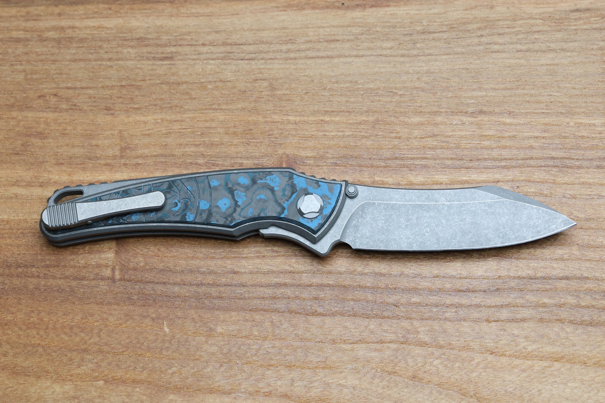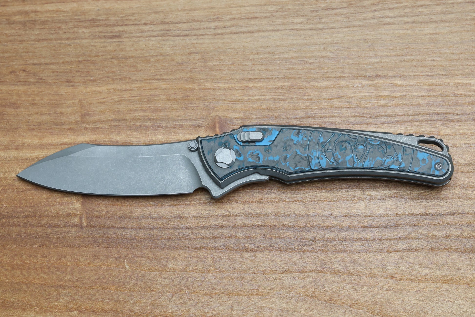 HAWK KNIFE DESIGNS TALON STONEWASHED M390 BLADE, ARCTIC STORM, FAT CARBON HANDLE OVERLAYS