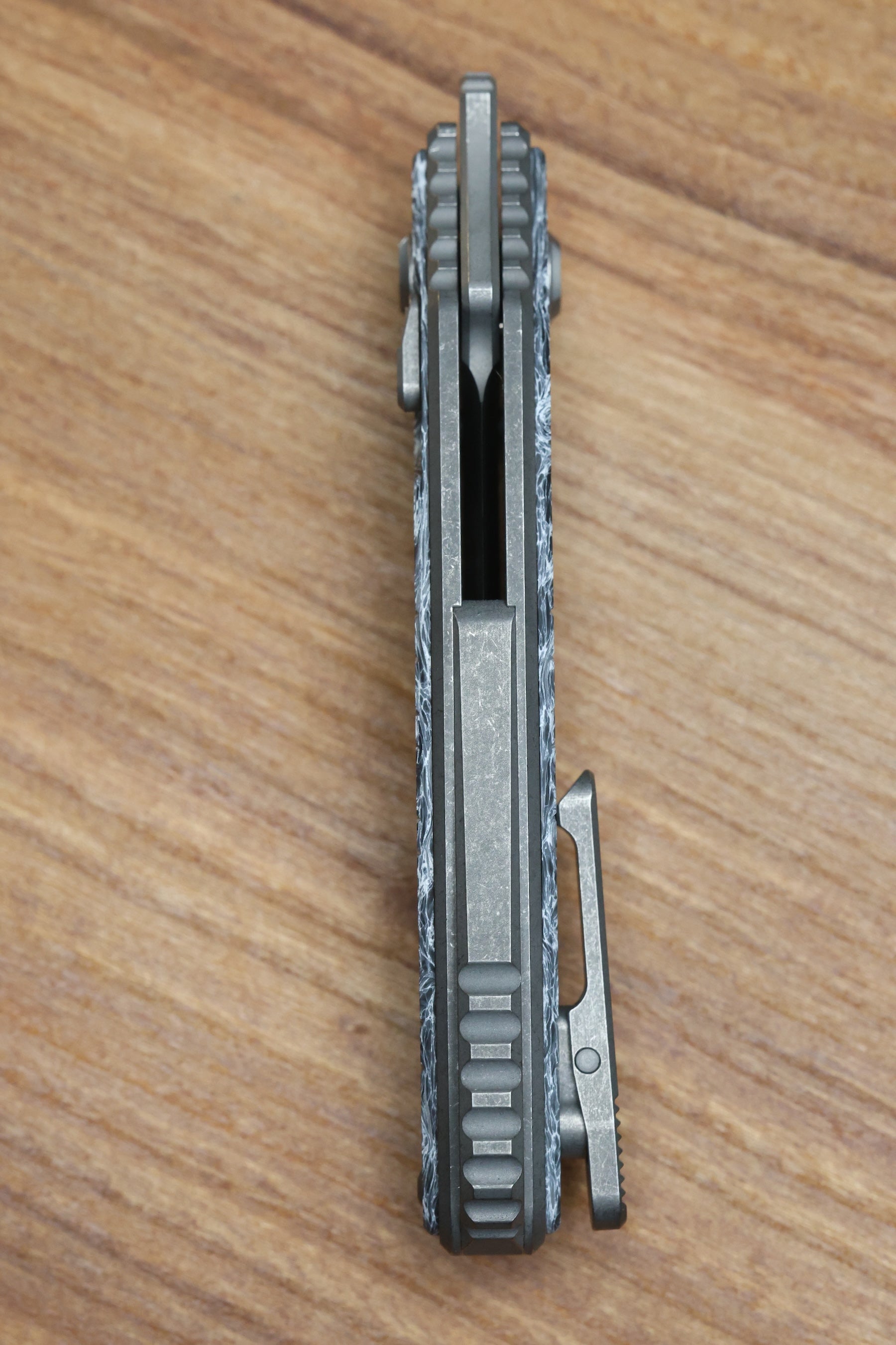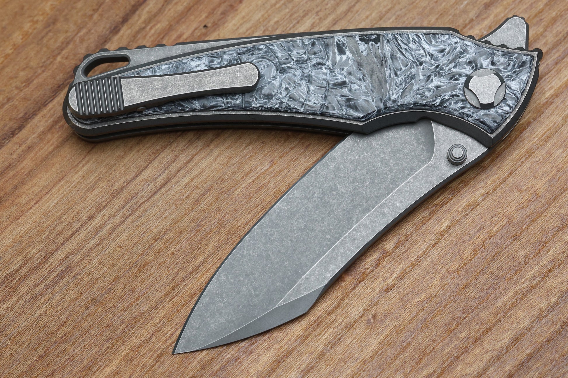 HAWK KNIFE DESIGNS TALON STONEWASHED M390 BLADE, POLAR FAT CARBON HANDLE OVERLAYS