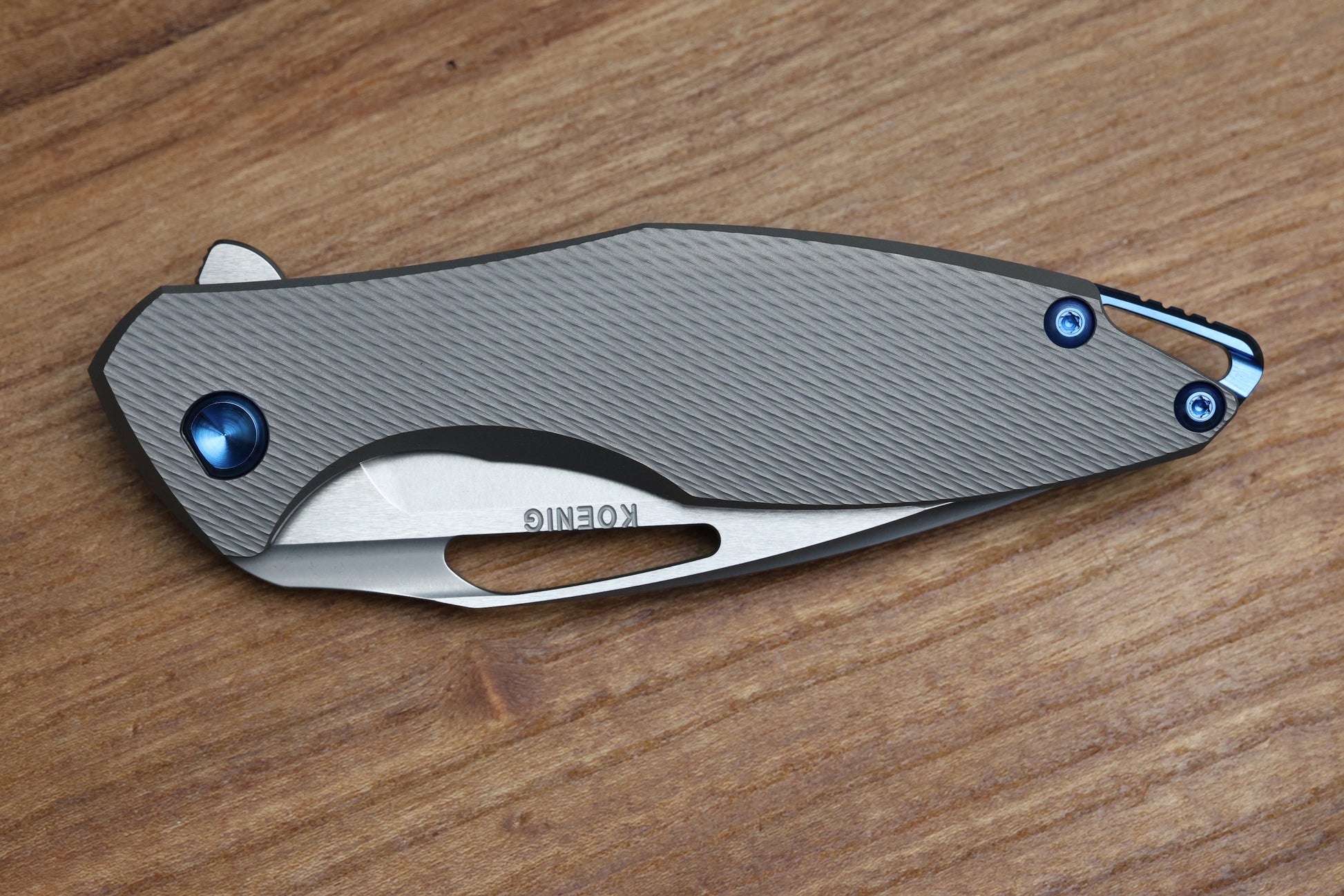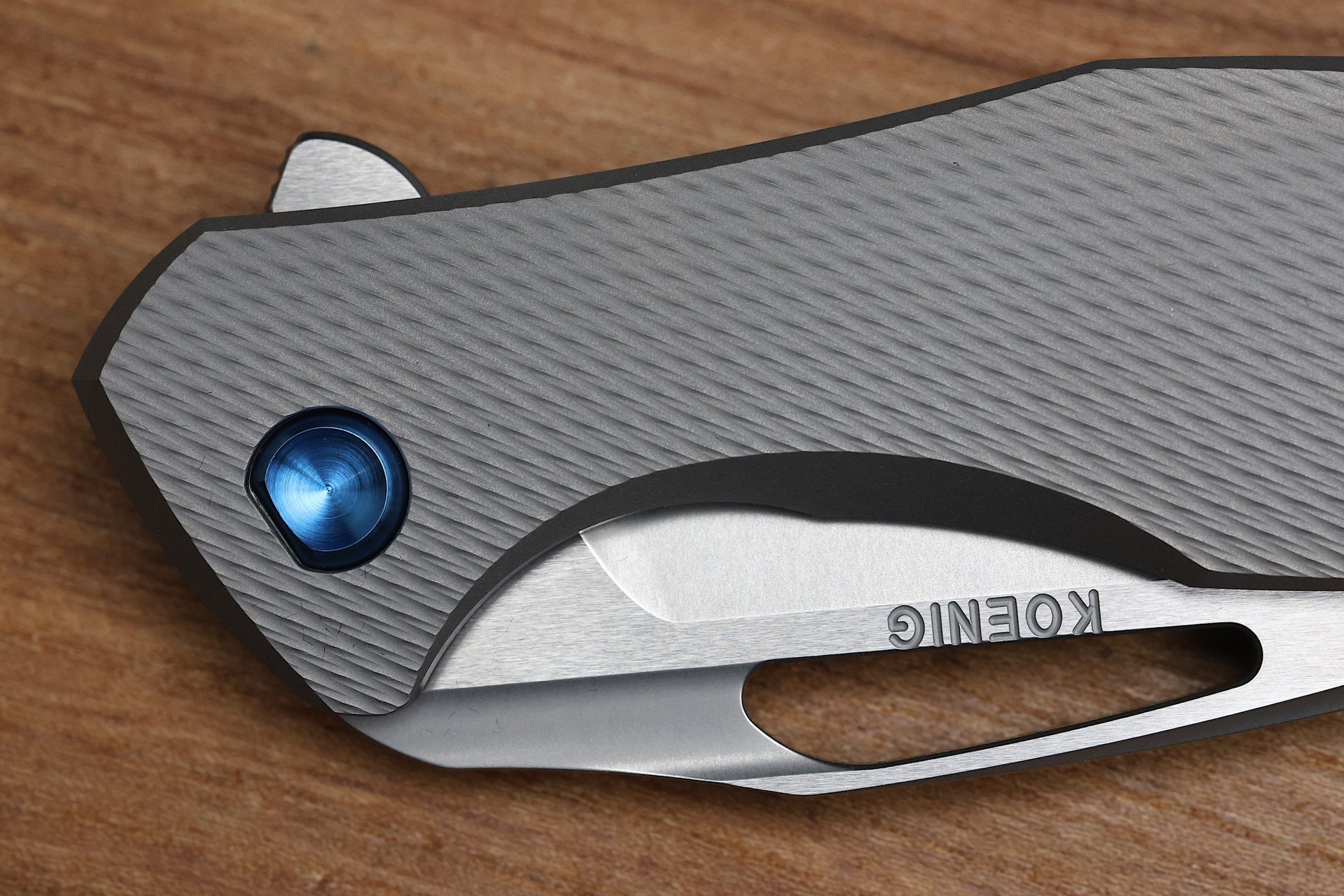 KOENIG KNIVES ARIUS - CORDA TITANIUM HANDLE - BLUE HARDWARE - BURNISHED W/ POLISHED FLATS M390 BLADE
