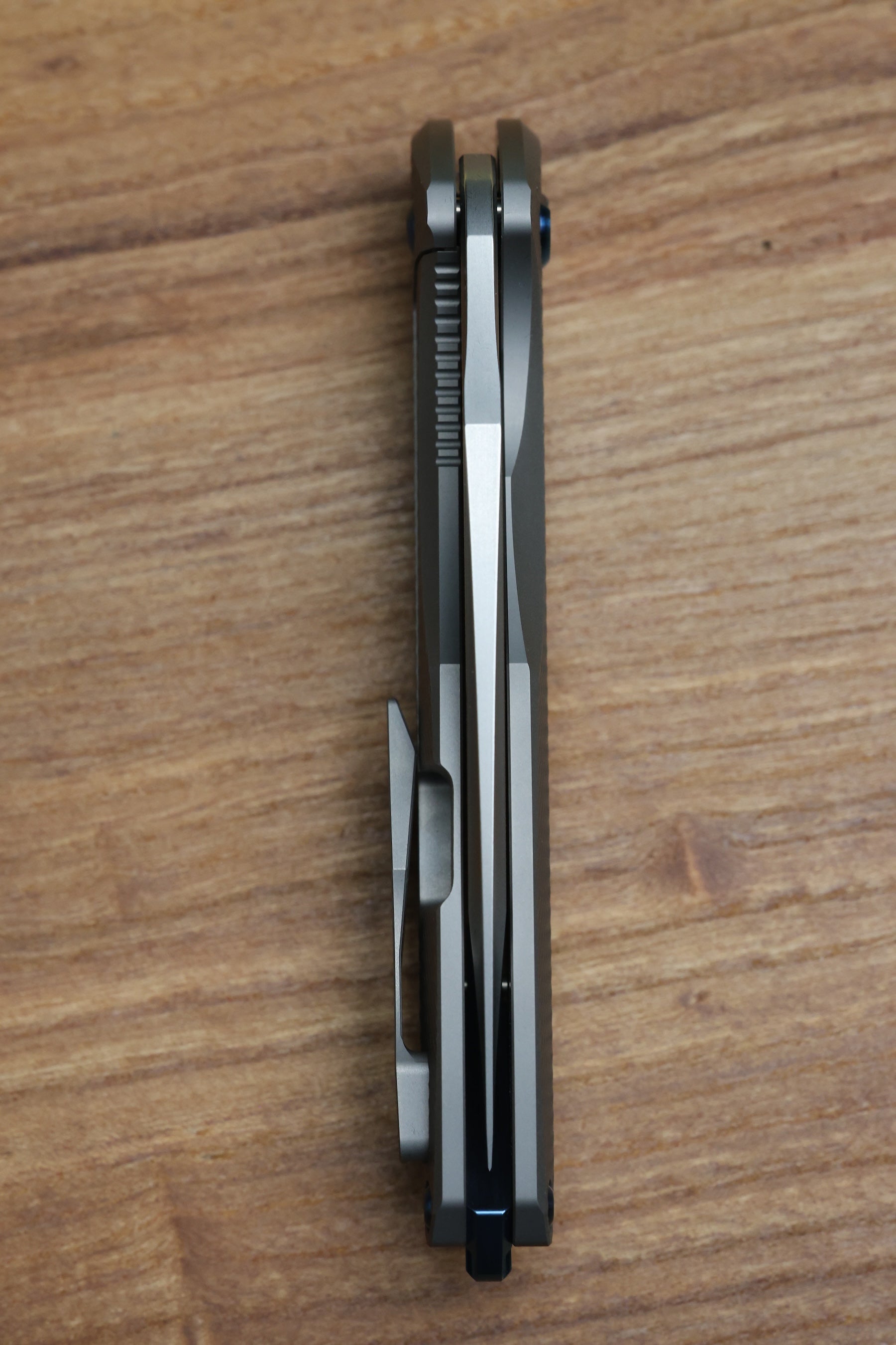 - Tip up blasted finish Titanium pocket clip with hidden screw
