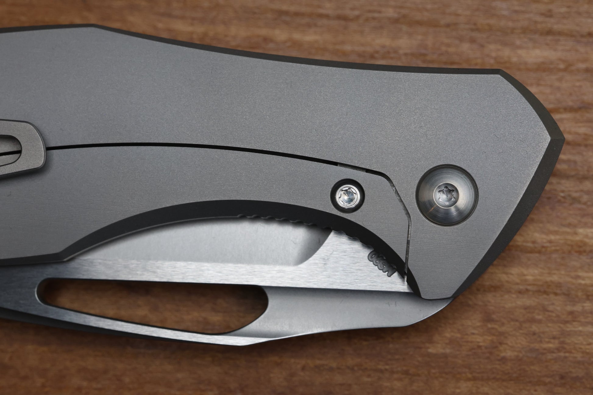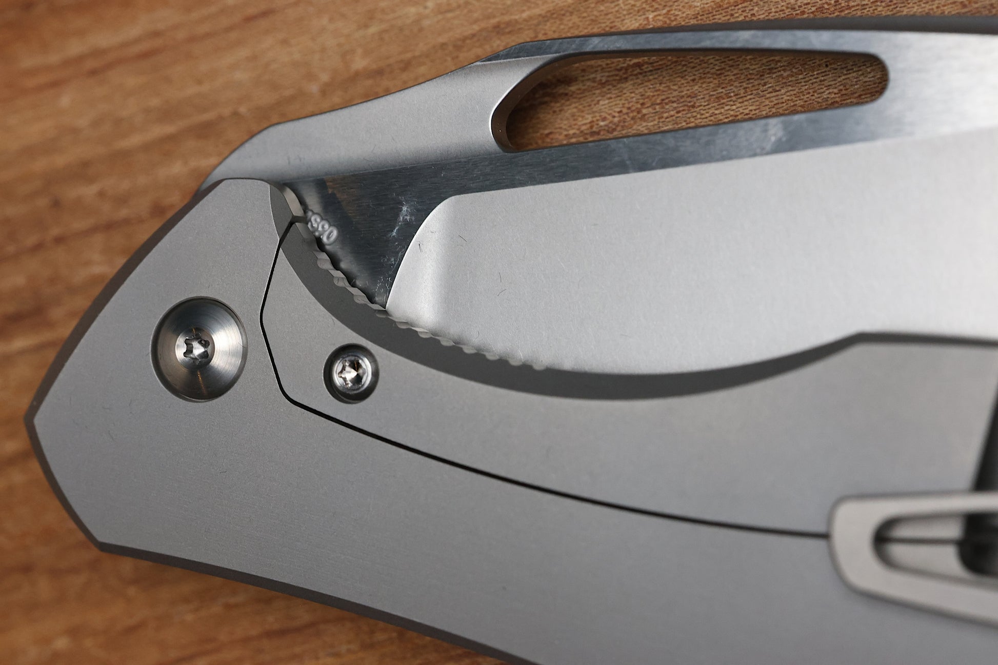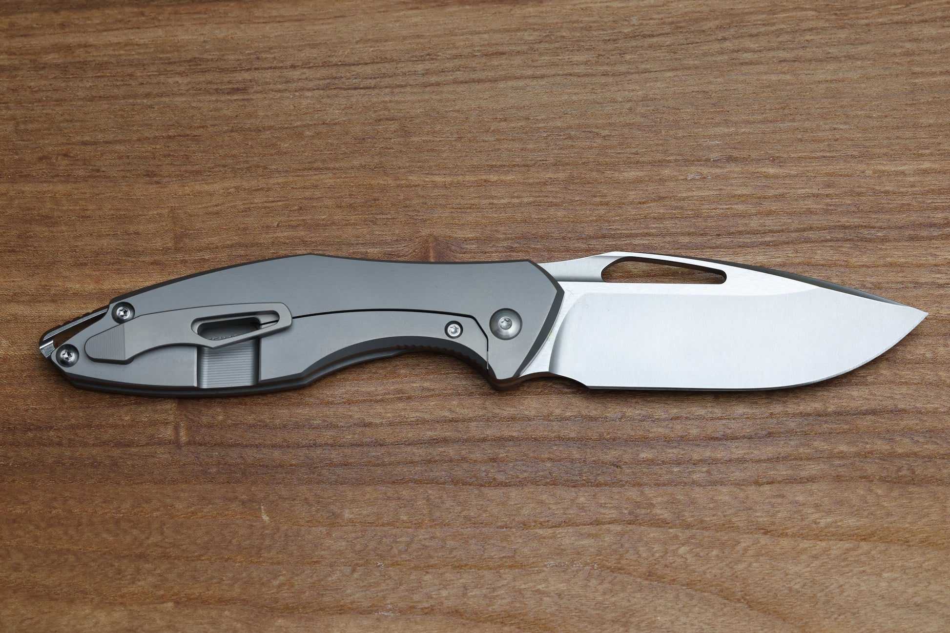 - Tip up blasted finish Titanium pocket clip with hidden screw
