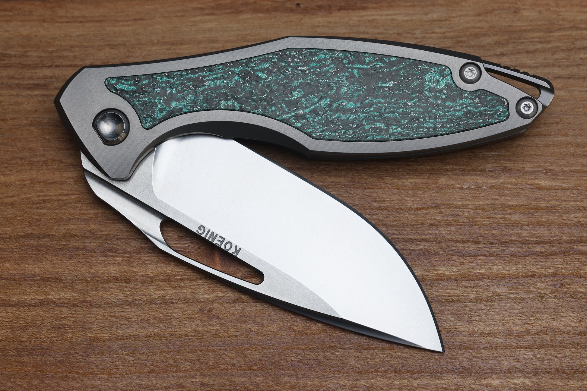 KOENIG KNIVES ARIUS NON-FLIPPER - TEAL MAGNETIC CARBOTI INLAY M390