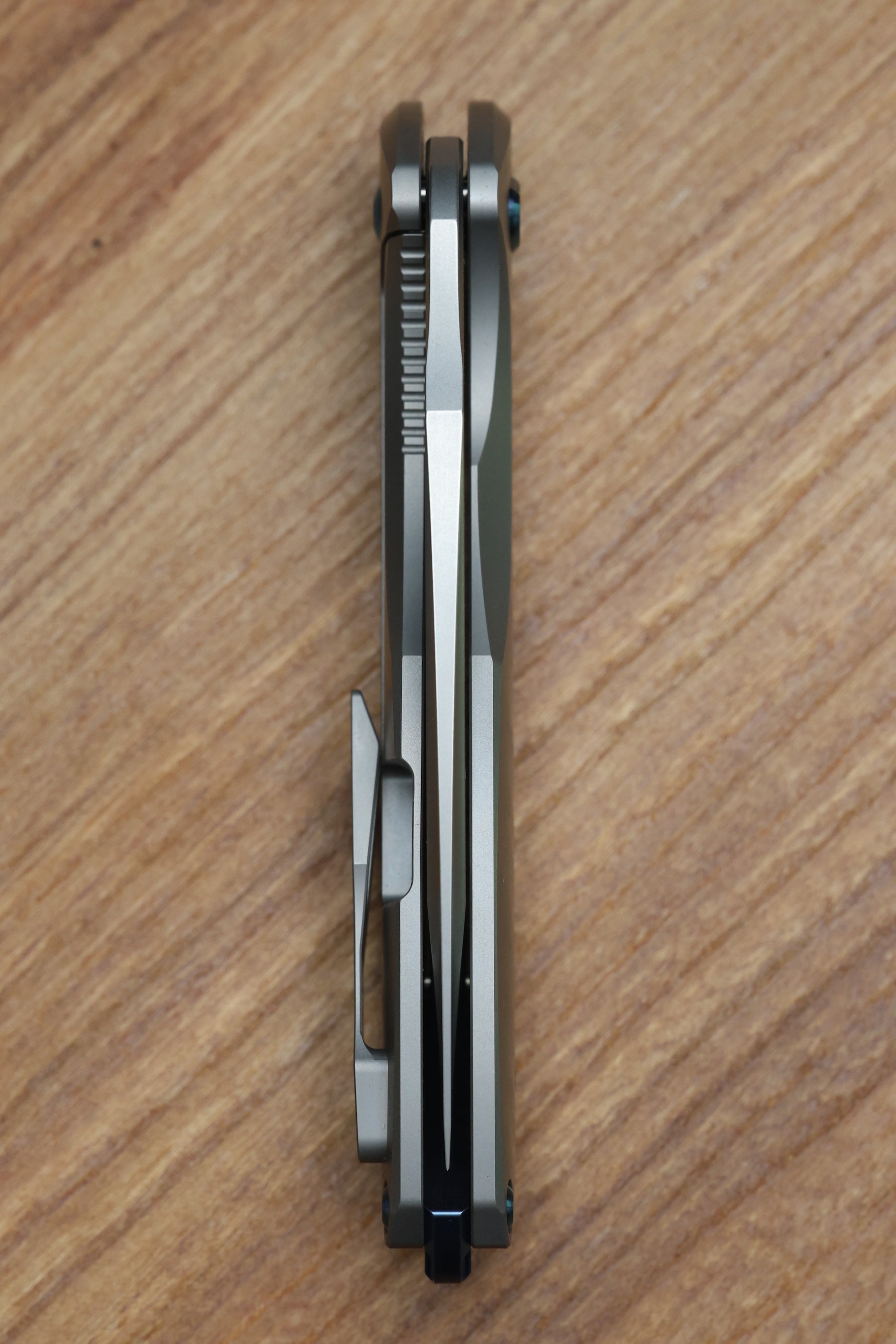 - Bead blasted tip up Titanium pocket clip with hidden screw