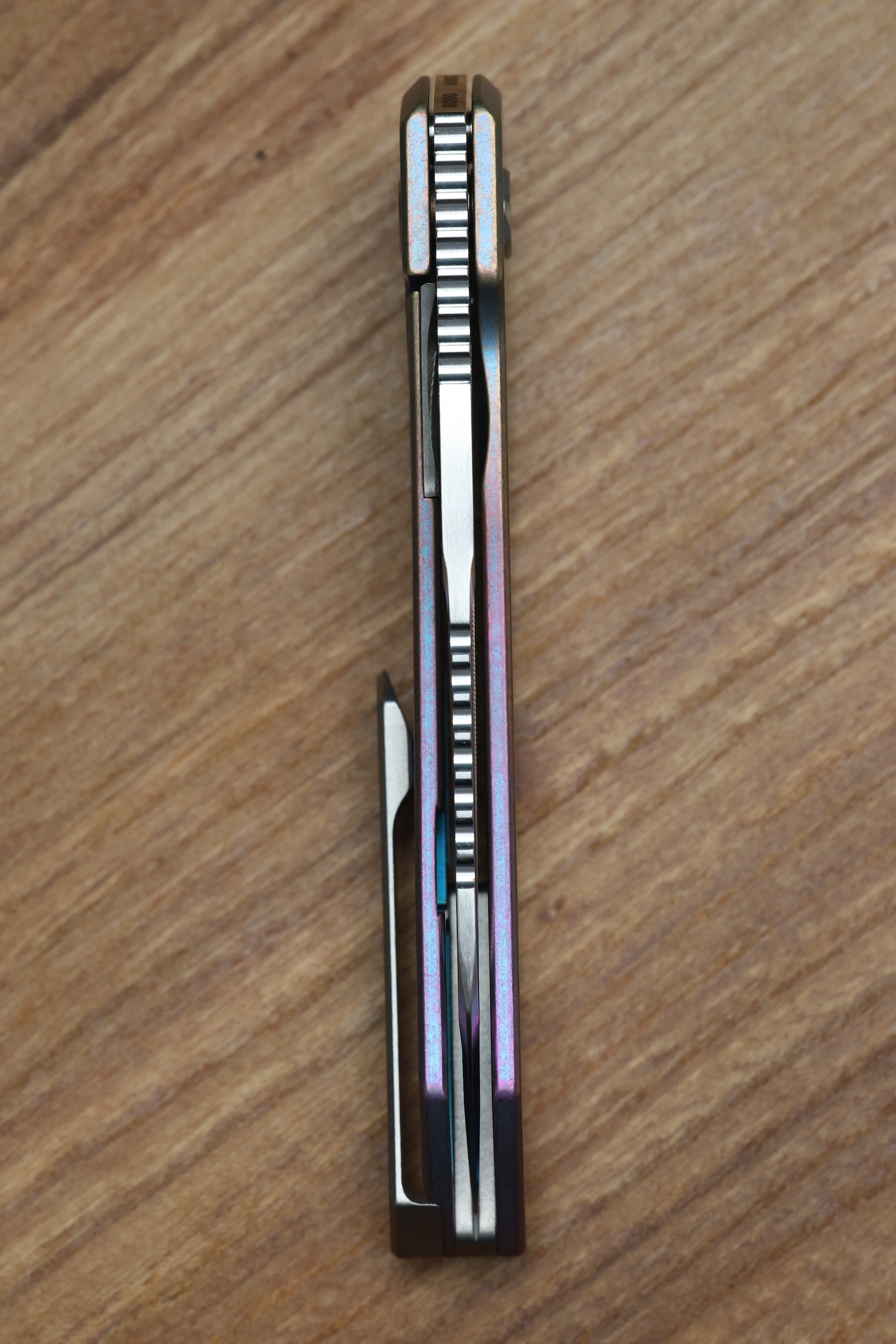 - Raw finish Titanium hardware and pivot screws