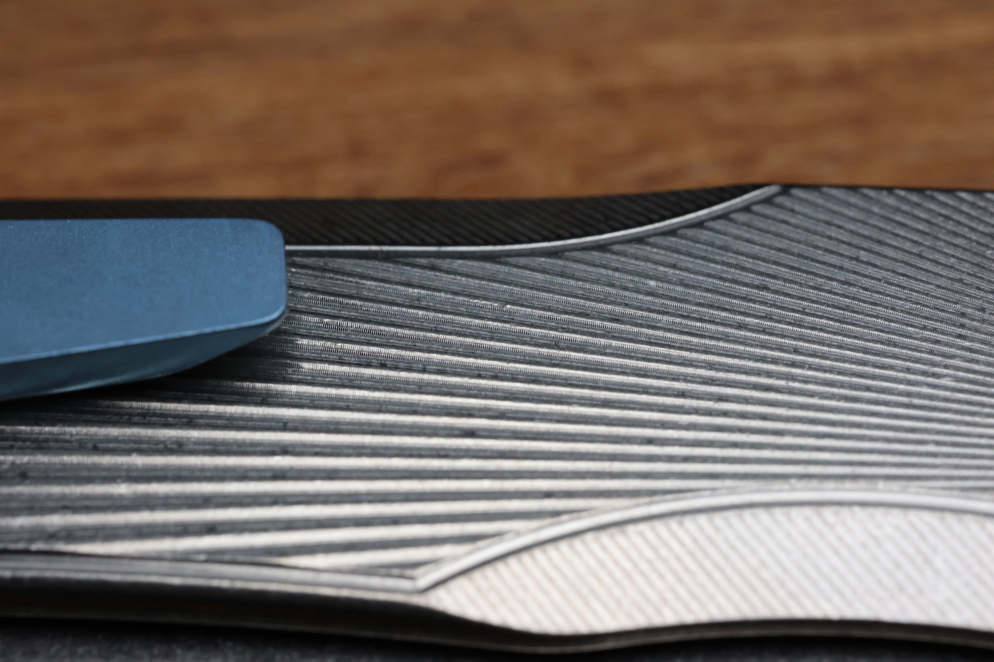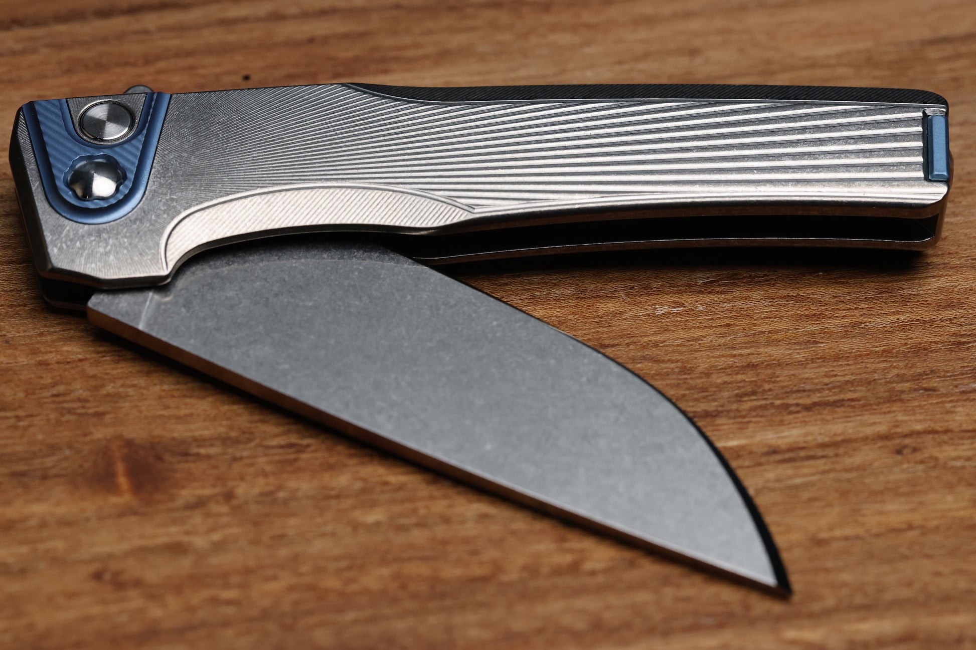 - 3.375" stonewashed S90V blade (61.6 HRC)
