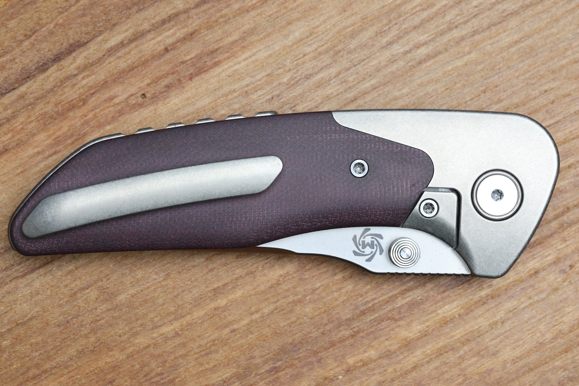 MECHFORCE & BARKER KNIVES COLLAB HOKKAIDO W/ TITANIUM & BURGUNDY MICARTA HANDLE & MAGNACUT