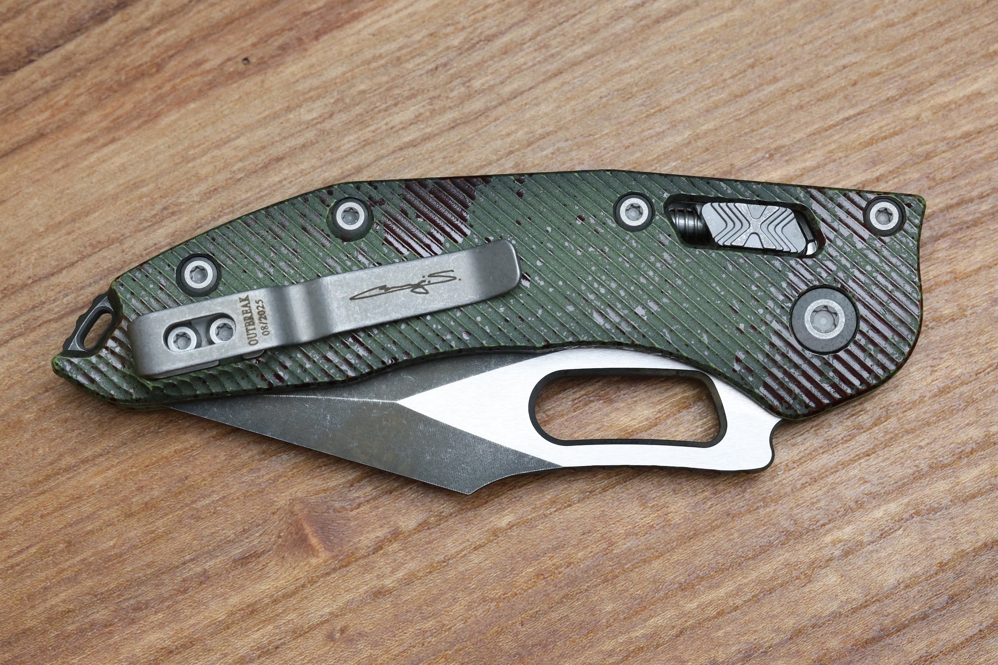 MICROTECH KNIVES MANUAL STITCH RAM LOK FLUTED ALUMINUM OUTBREAK W/ M390MK SIGNATURE SERIES 169RL-1FLOBS