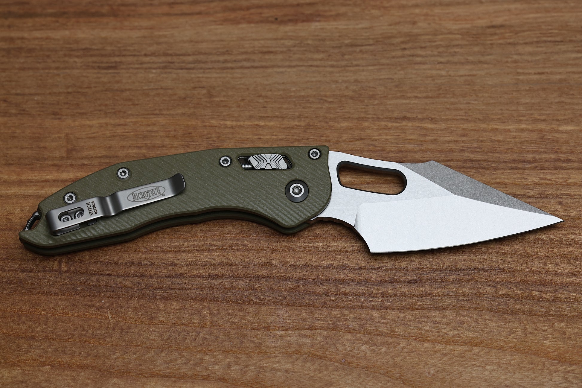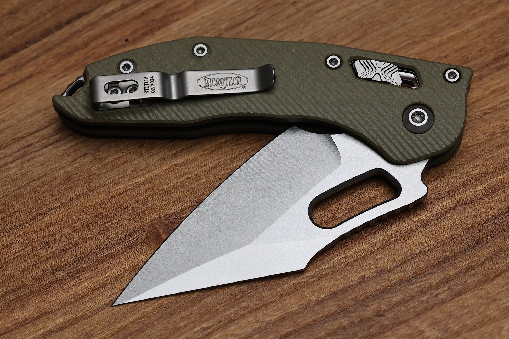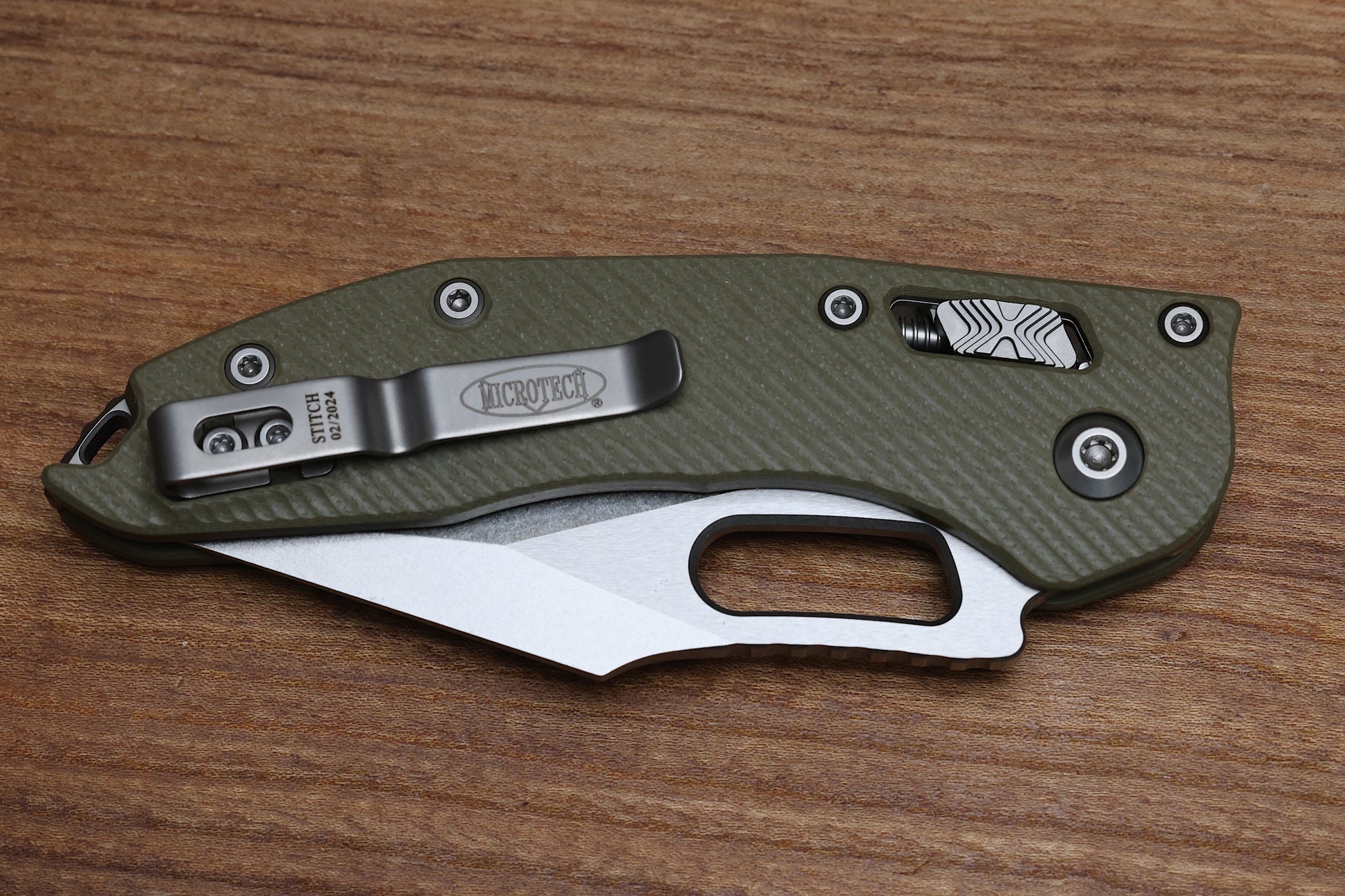 The latest production Stitch variation from Microtech Knives and Borka Blades, the manual Stitch RAM LOK!