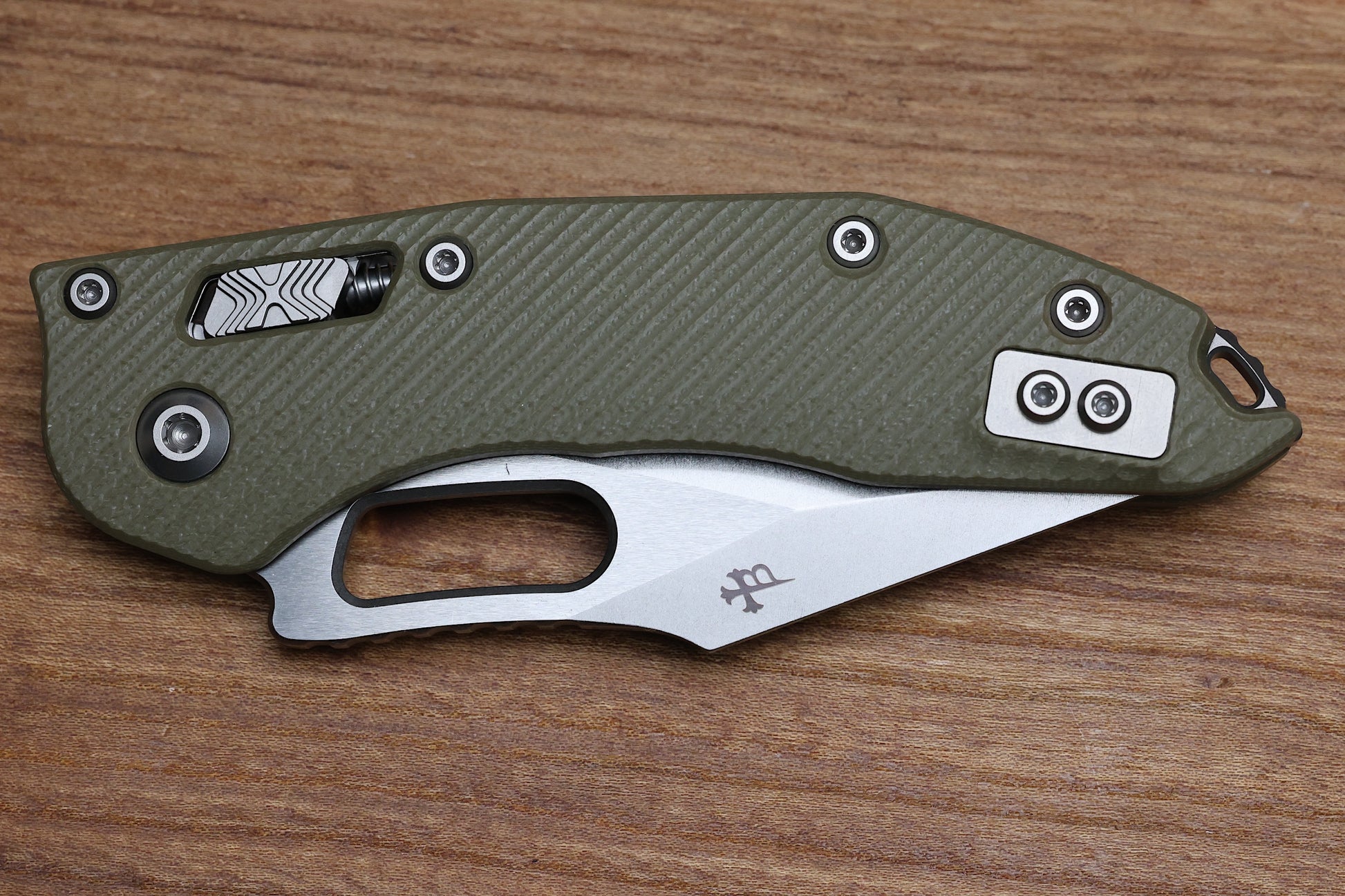 MICROTECH KNIVES MANUAL STITCH RAM LOK FLUTED OD GREEN G-10 & M390MK 169RL-10 FLGTOD