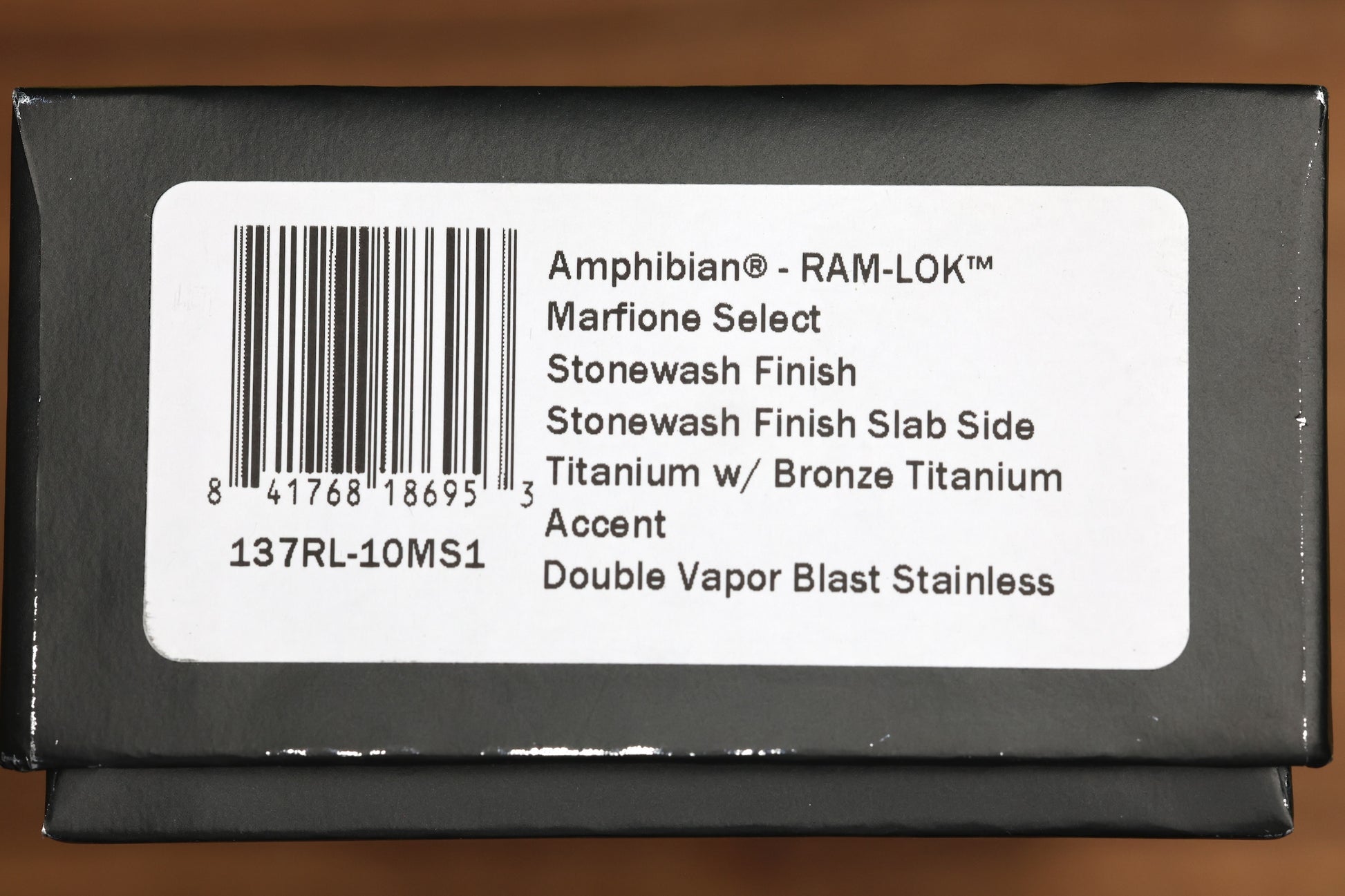 MICROTECH KNIVES "MARFIONE SELECT" AMPHIBIAN - RAM-LOK STONEWASH FINISH SLAB SIDE TITANIUM W/ BRONZE TITANIUM ACCENT 137RL-10MS1