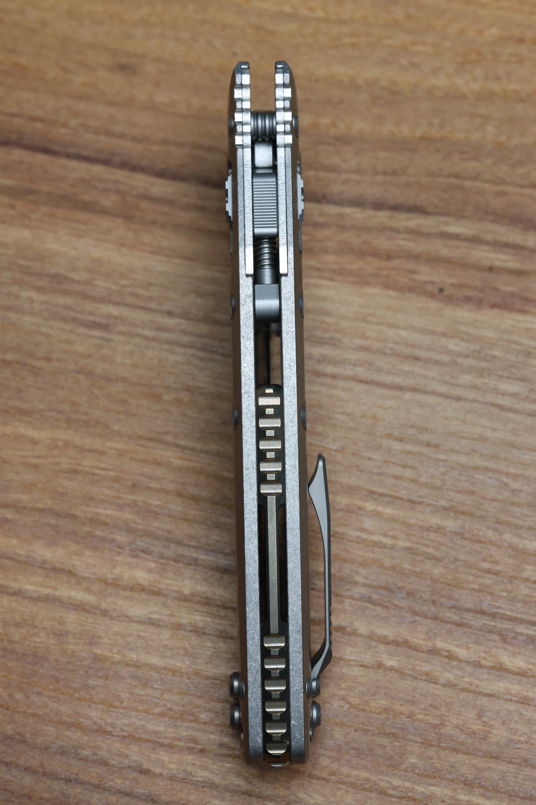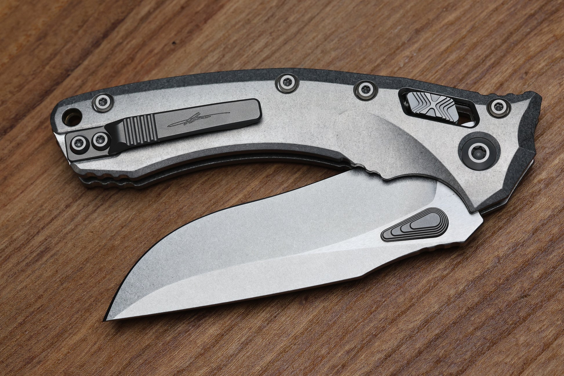 - 4.00" stonewashed M390MK blade with jimping on spine