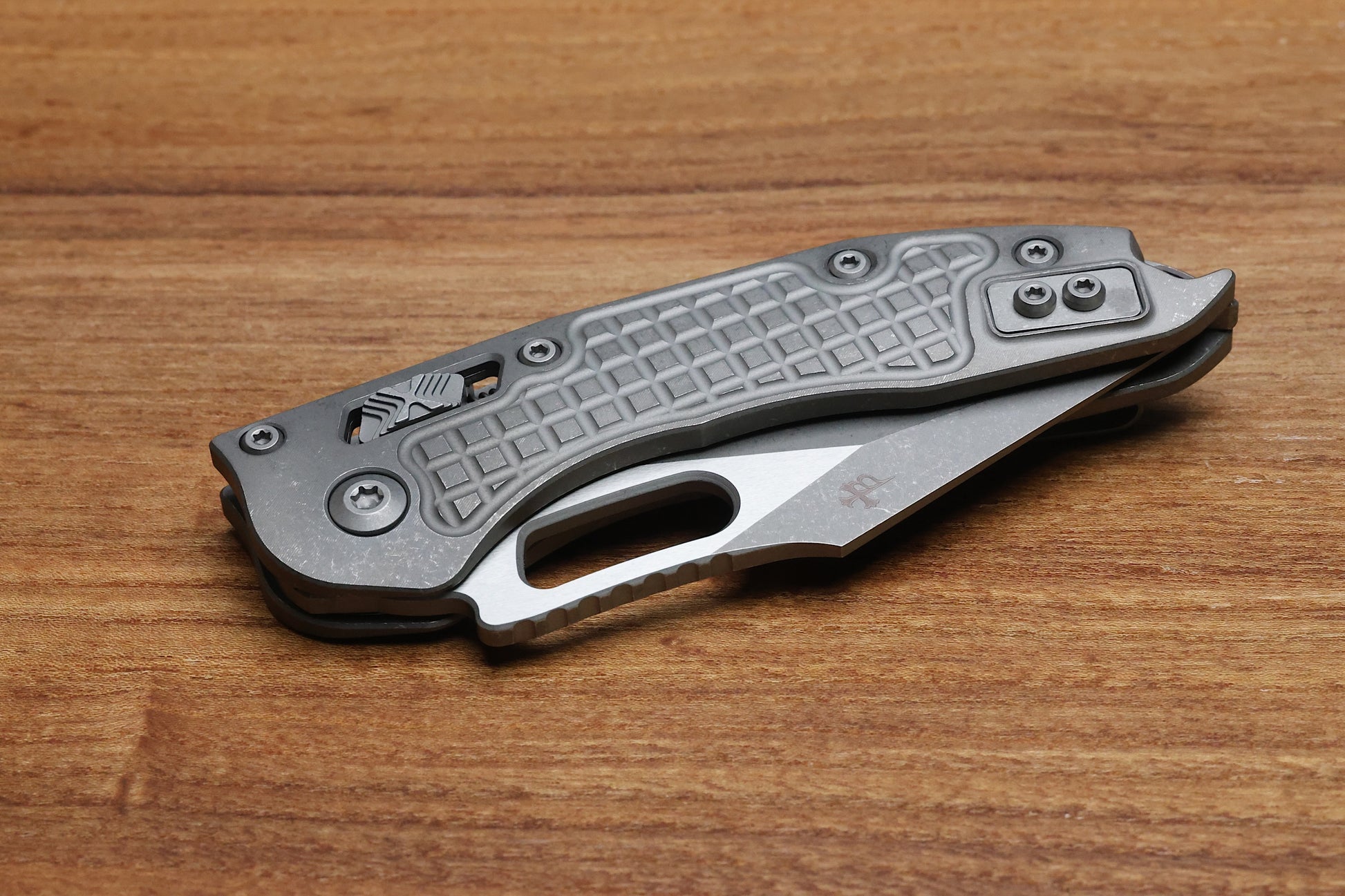 MICROTECH KNIVES "MARFIONE SELECT" STITCH - RAM-LOK APOCALYPTIC FINISH FRAG PATTERN TITANIUM 169RL-10APFRMS1