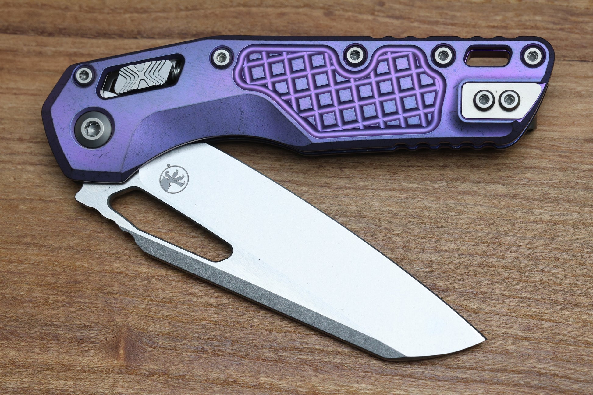 MICROTECH MARFIONE SELECT MSI RAM LOK PURPLE HAZE FRAG TITANIUM HANDLES W/ PURPLE ACCENTS & STONEWASH M390MK 210-10FRMS5
