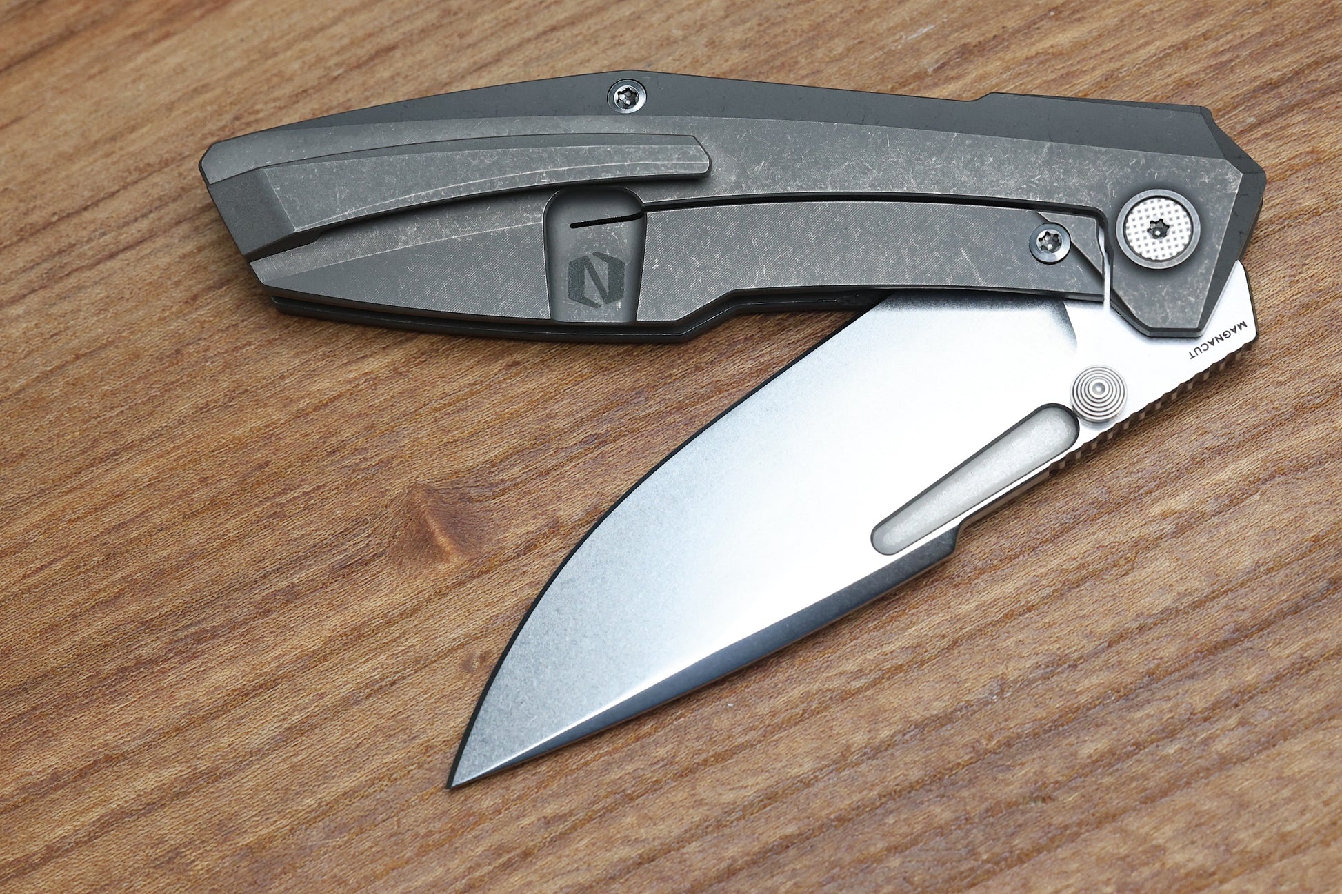 NULL KNIVES RAIDEN R2 - SMOOTH TITANIUM DARK STONEWASH HANDLE - STONEWASH MAGNACUT BLADE