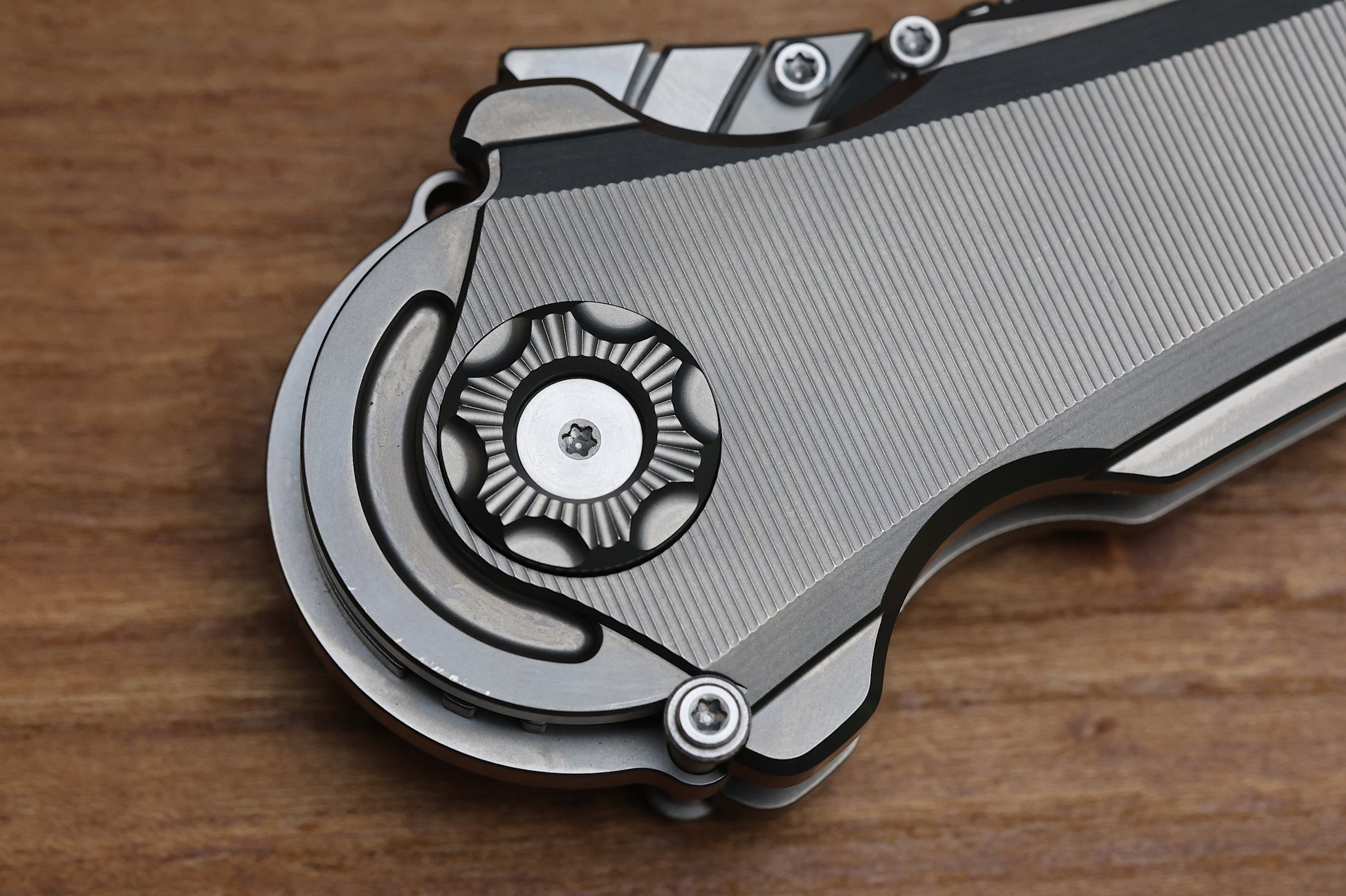 Operation: Press in and turn the pivot screw to pick how you want the blade to come out. One direction, the blade will come out closed. Press the pivot in and rotate it the other way and open the knife, the blade will come out open.