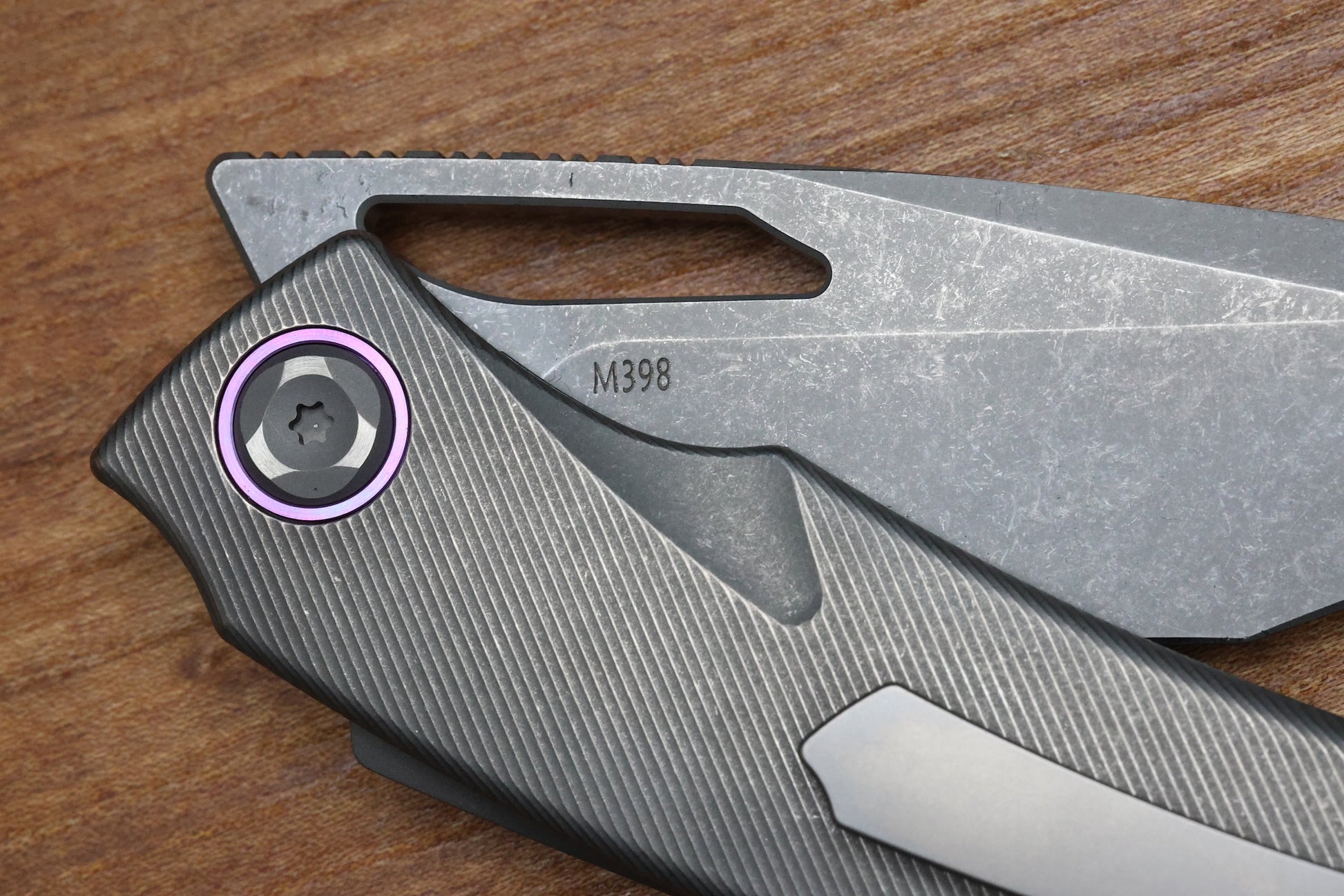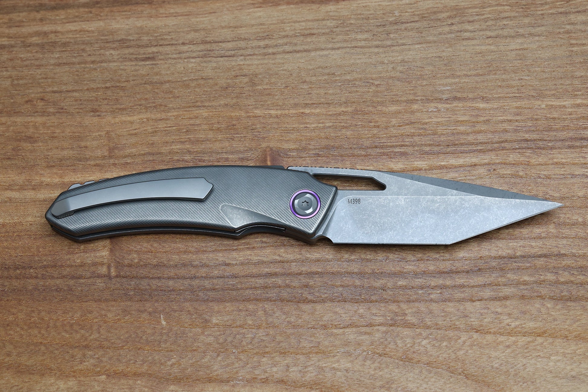 - Blade steel: Bohler M398
