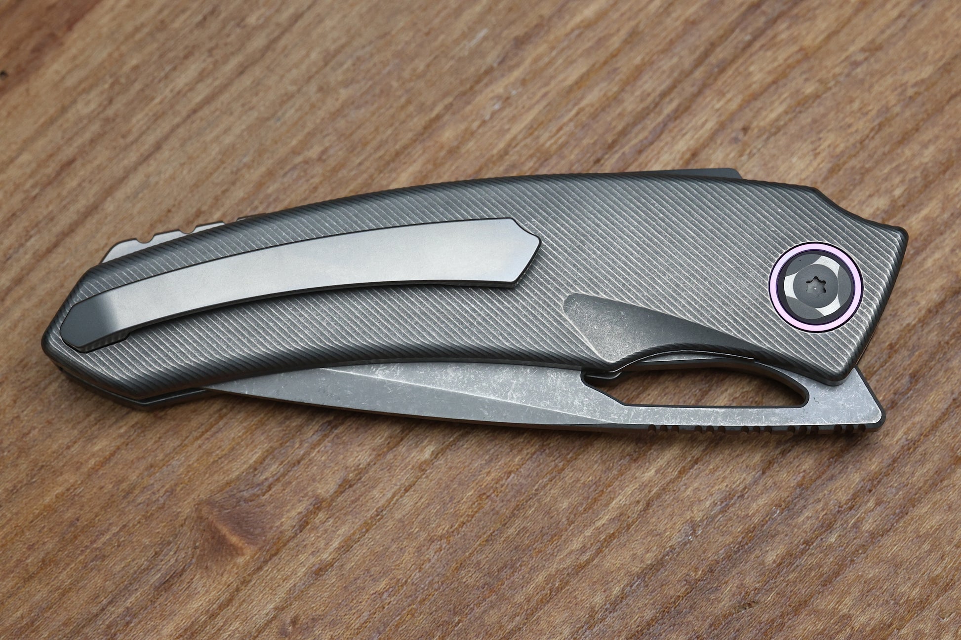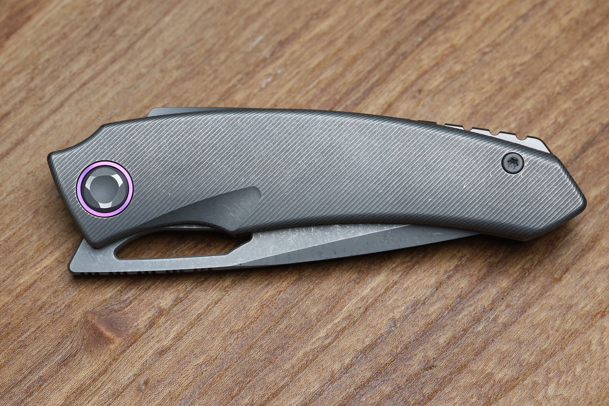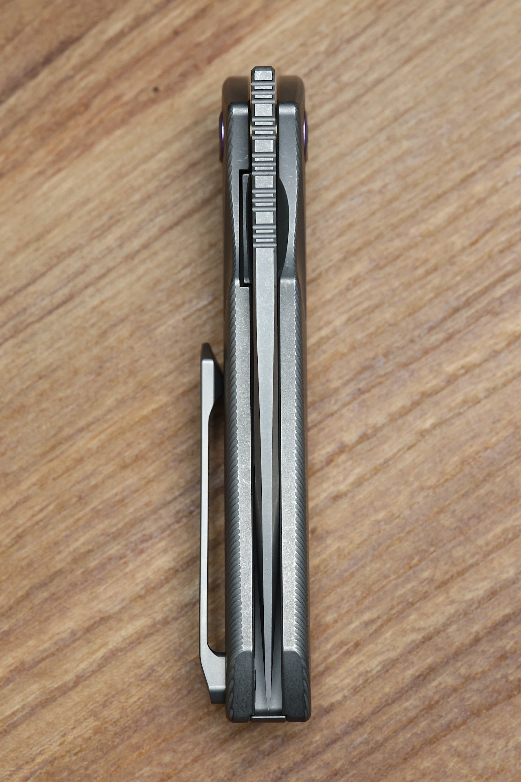 - Handle material: Titanium w/ Purple Accents