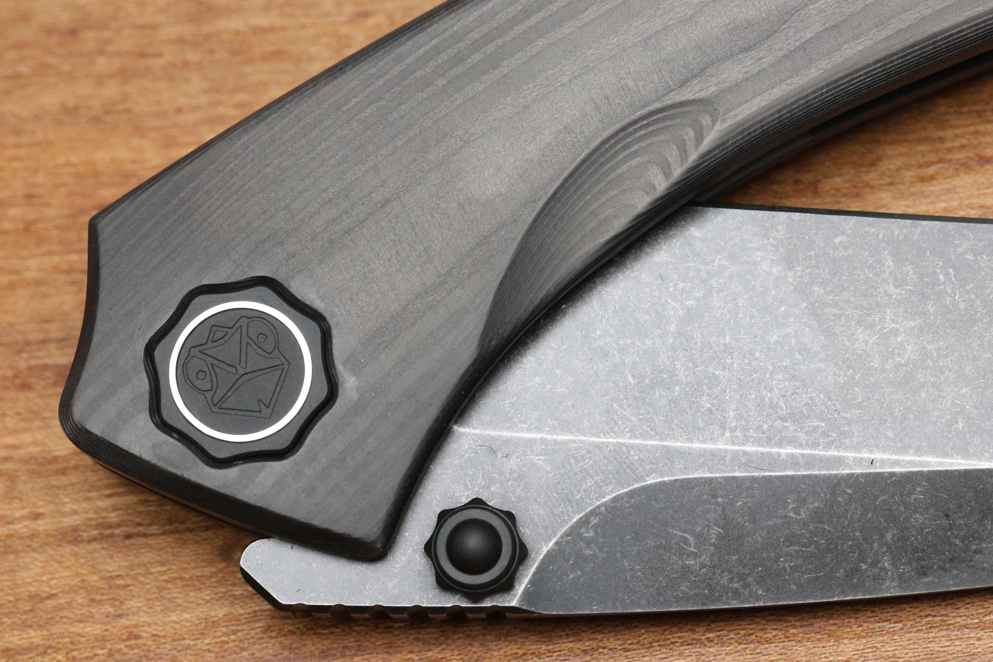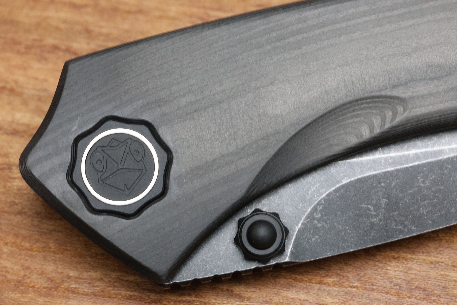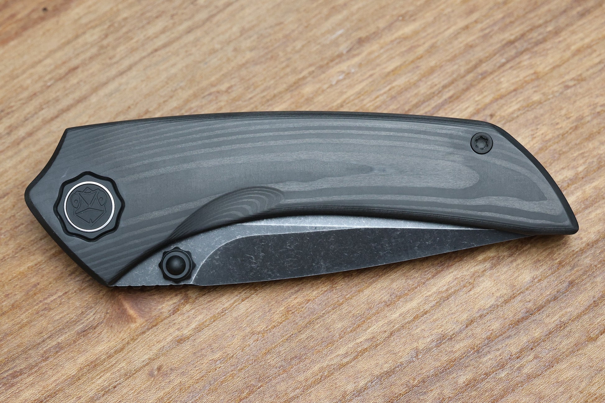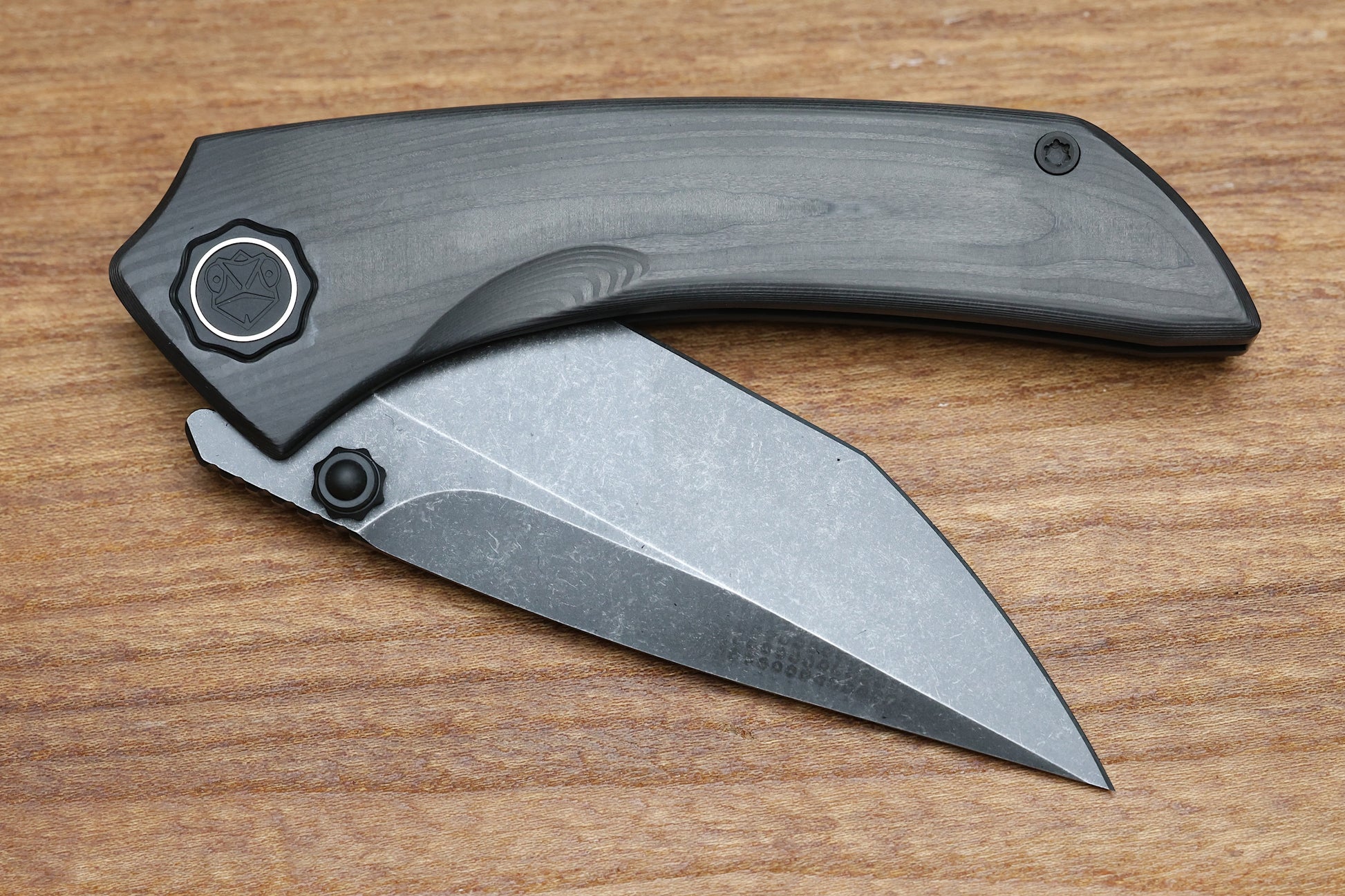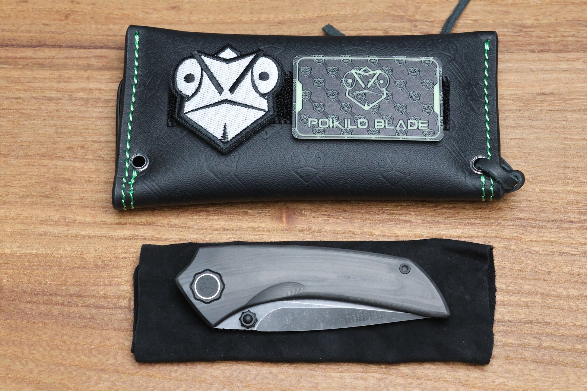 POIKILO BLADE TUNA STANDARD 1 W/ WOODGRAIN CARBON FIBER HANDLES & DARK STONEWASH M398