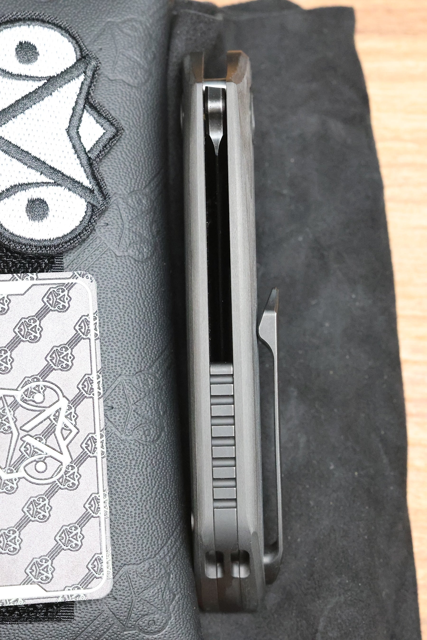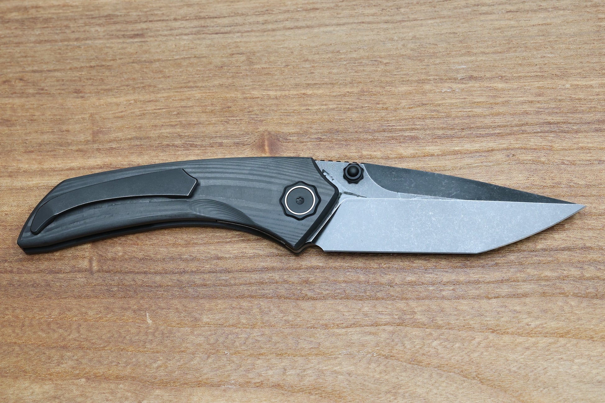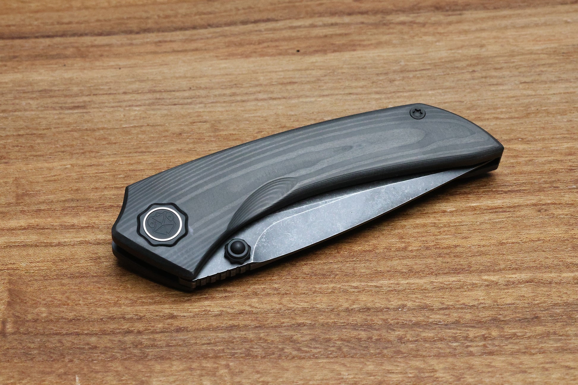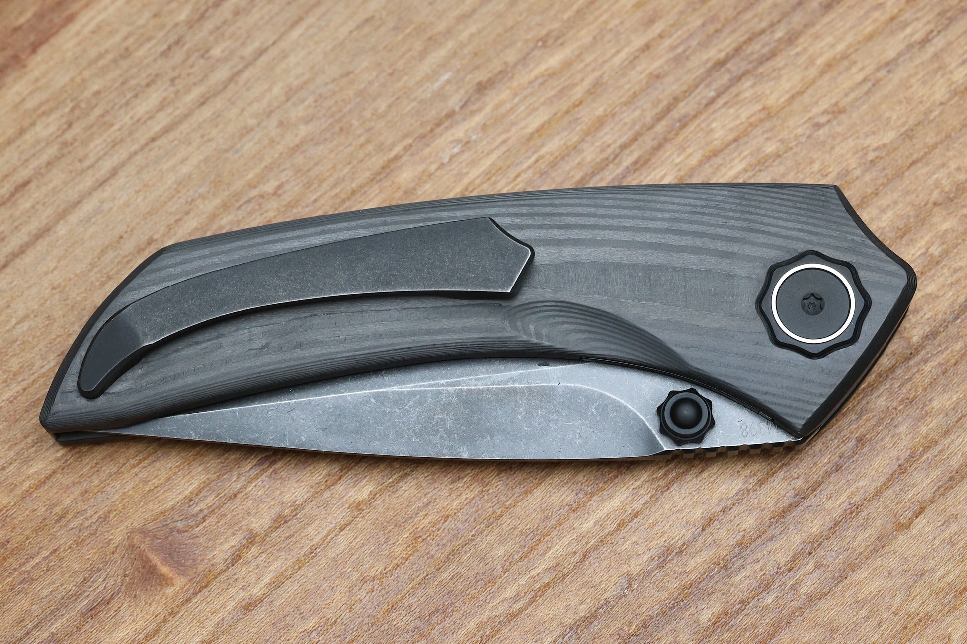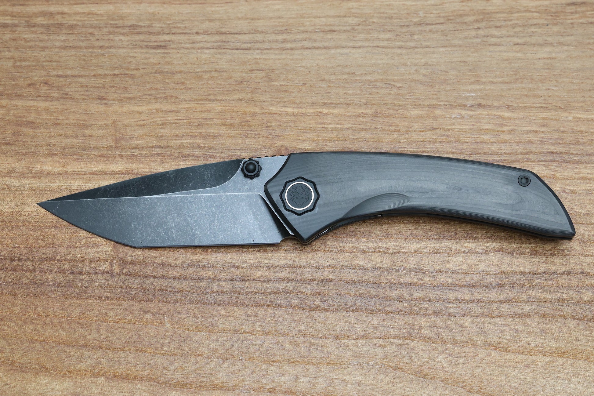 POIKILO BLADE TUNA STANDARD 1 W/ WOODGRAIN CARBON FIBER HANDLES & DARK STONEWASH M398