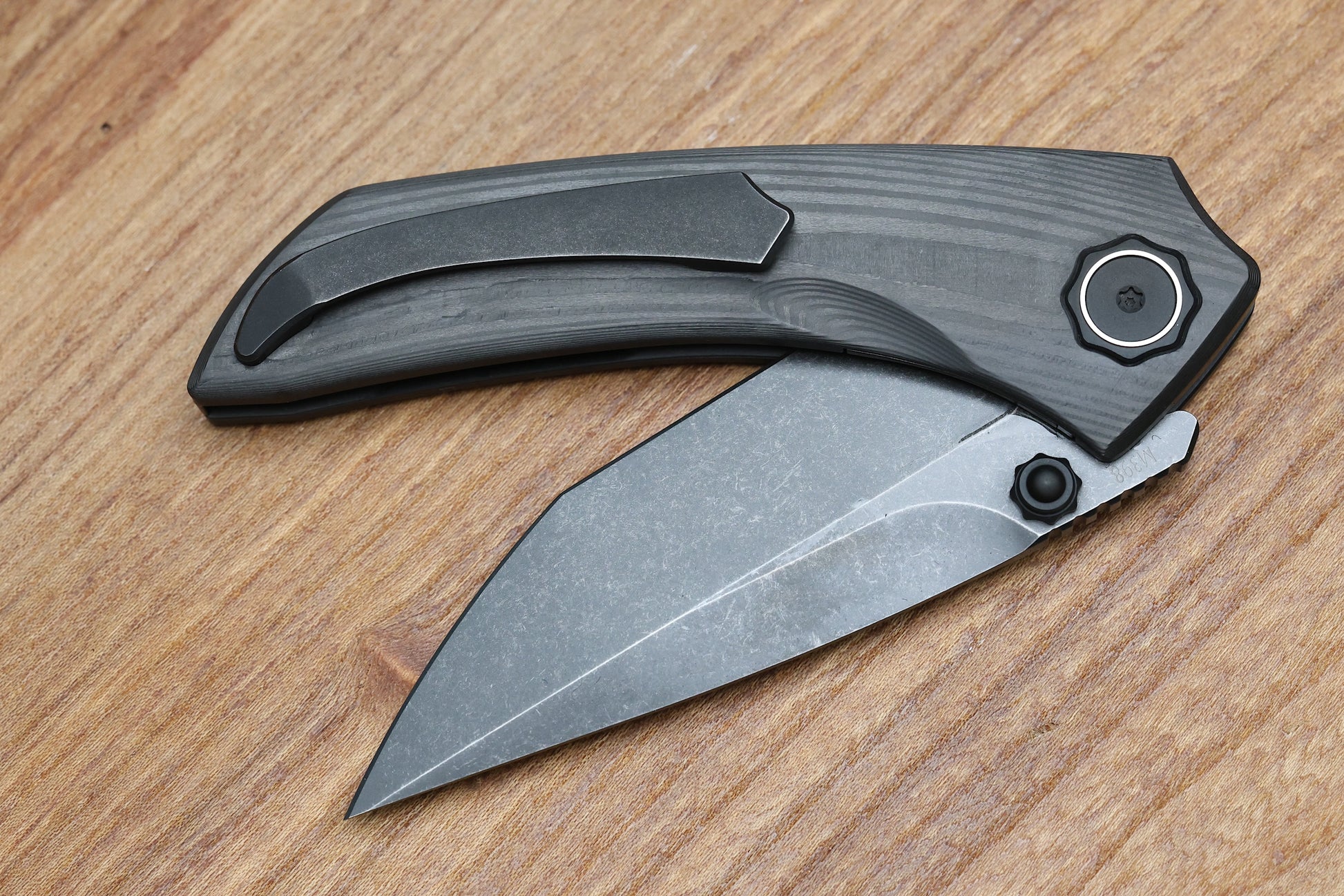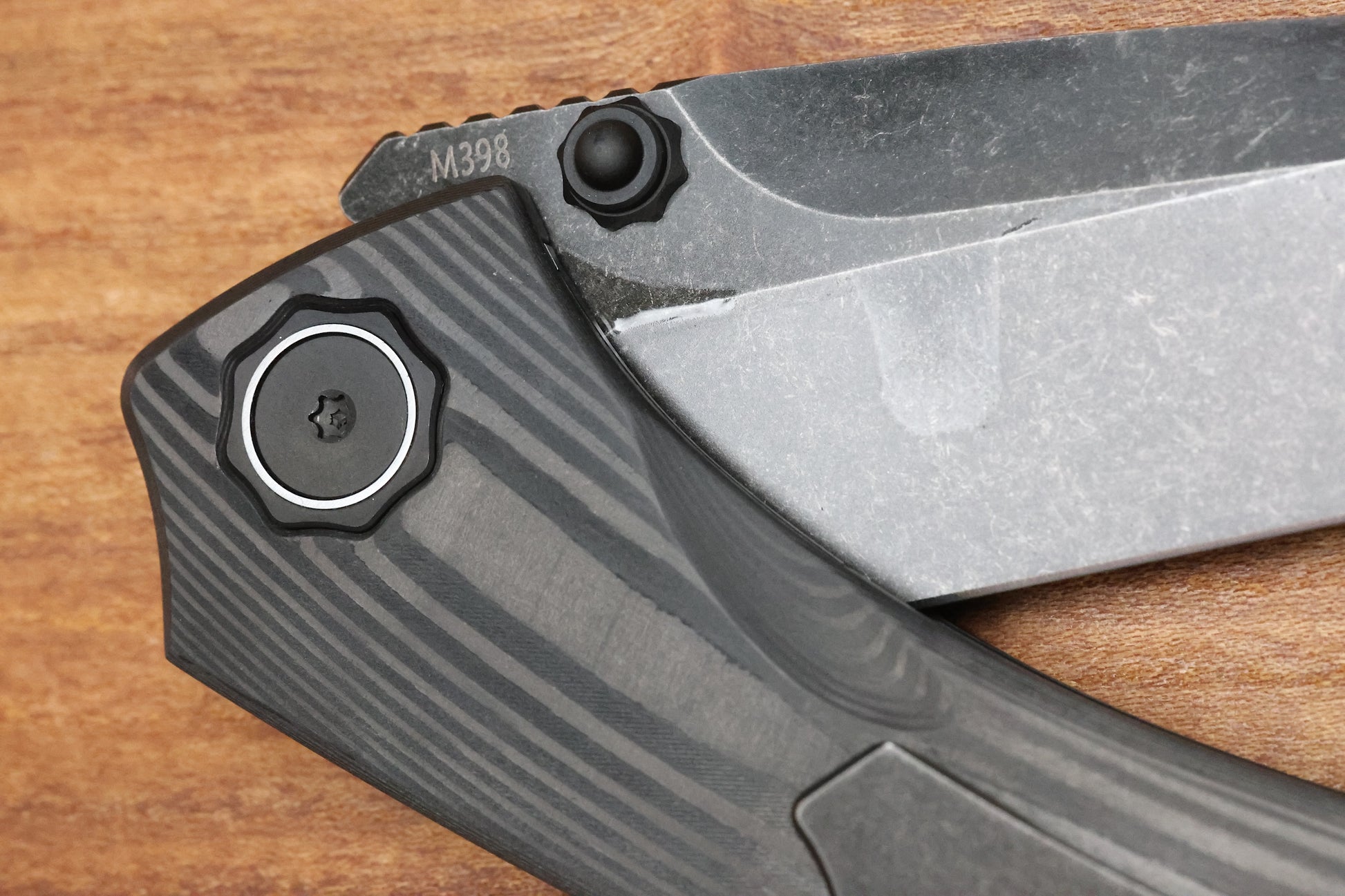 - Blade steel: Bohler M398