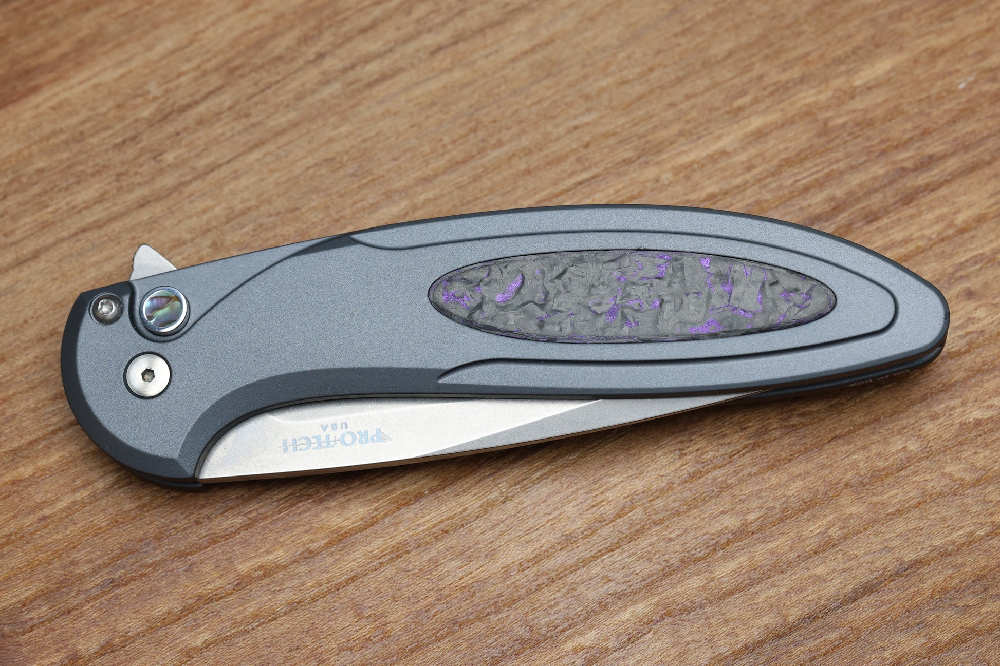 PRO-TECH KNIVES CAMBRIA - CCKSF25.CAMBRIA.1 - GREY ALUMINUM HANDLE - TECHNOCARBO PURPLE INLAY - STONEWASH MAGNACUT BLADE
