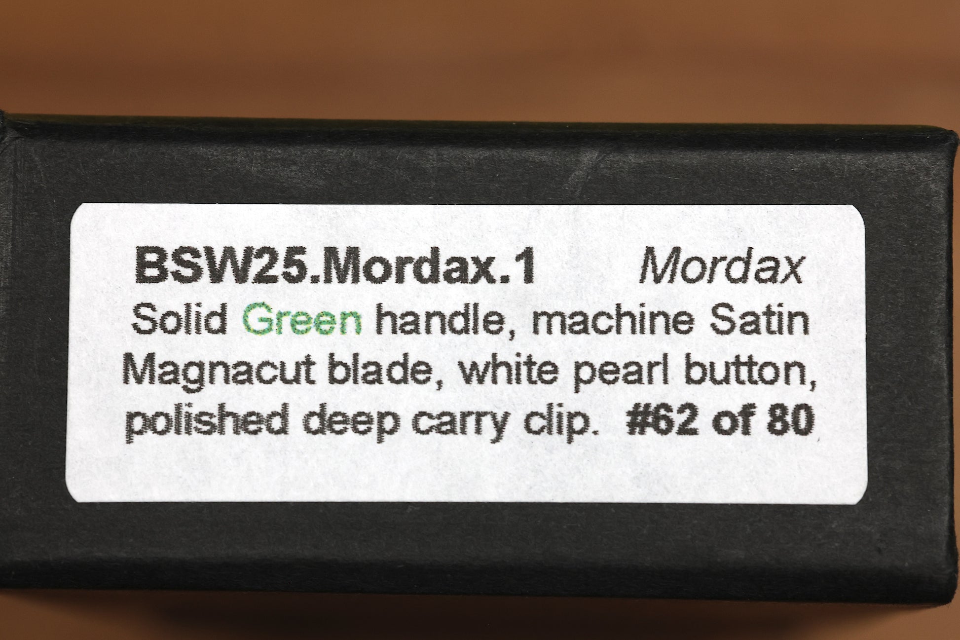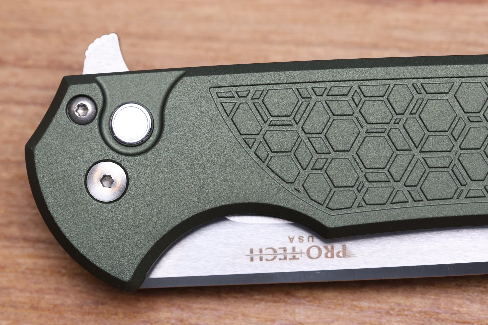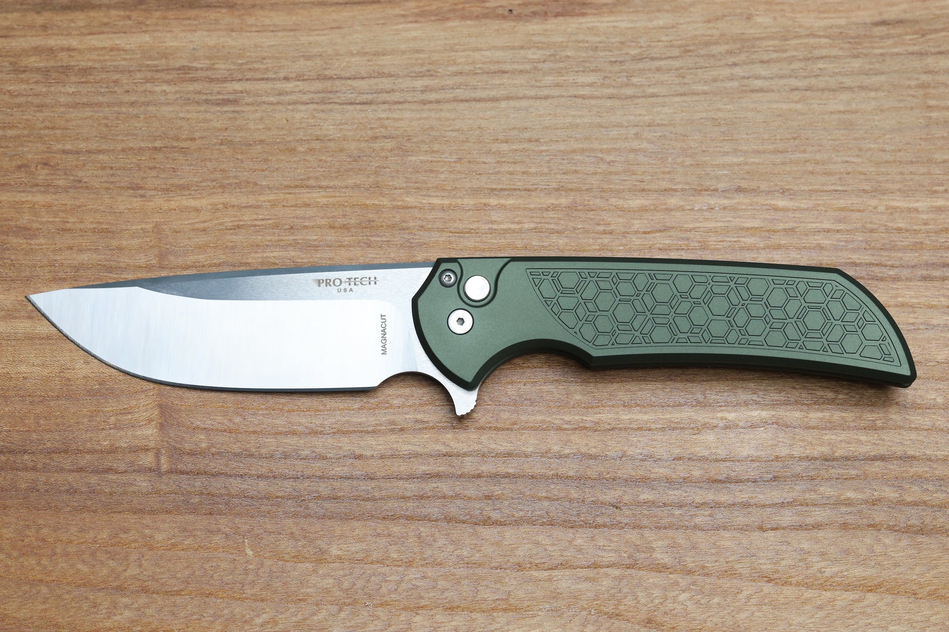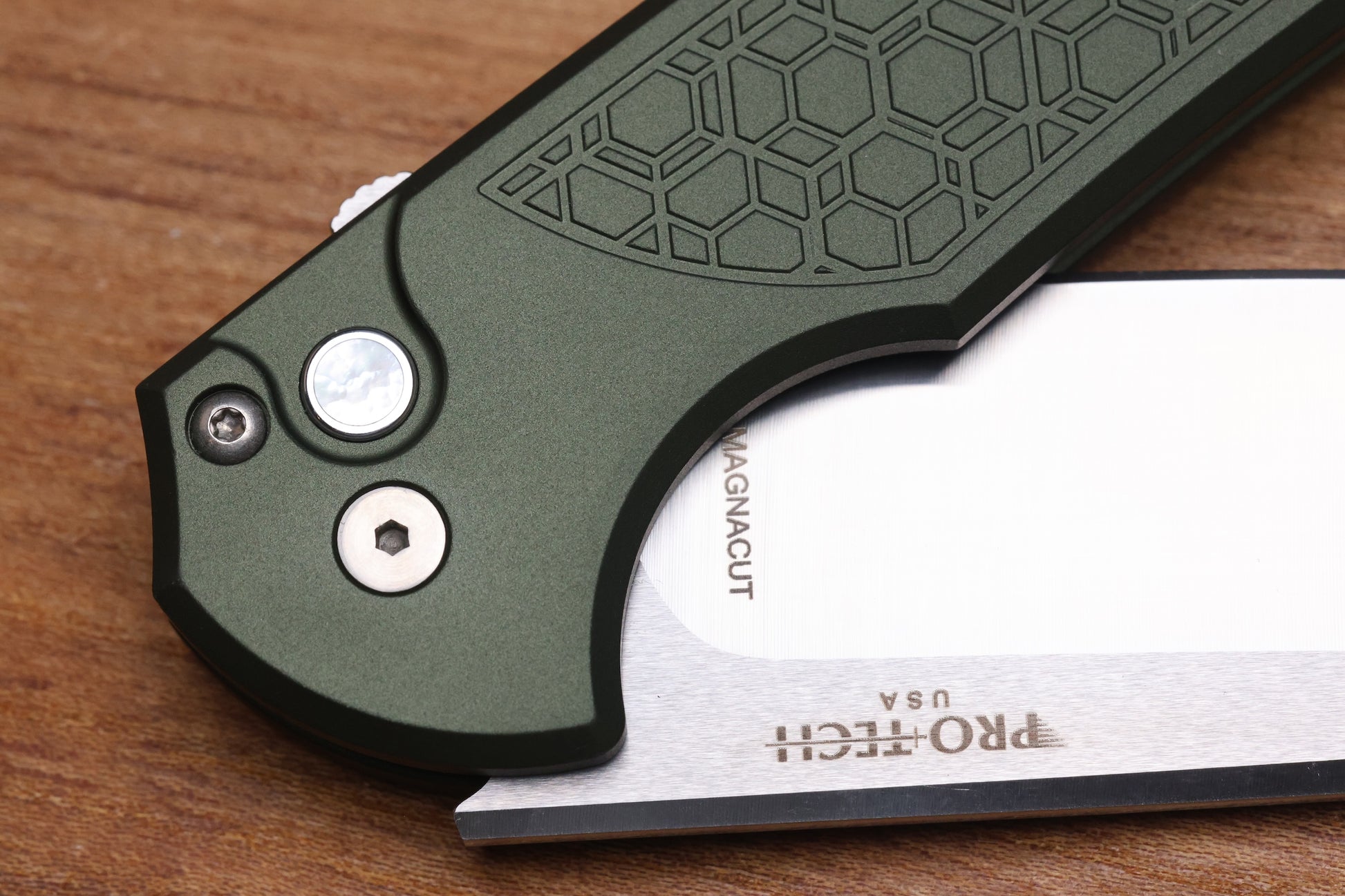 PRO-TECH MORDAX GRIDLOCK GREEN ALUMINUM HANDLE W/ MACHINE SATIN MAGNACUT BSW25.MORDAX.1