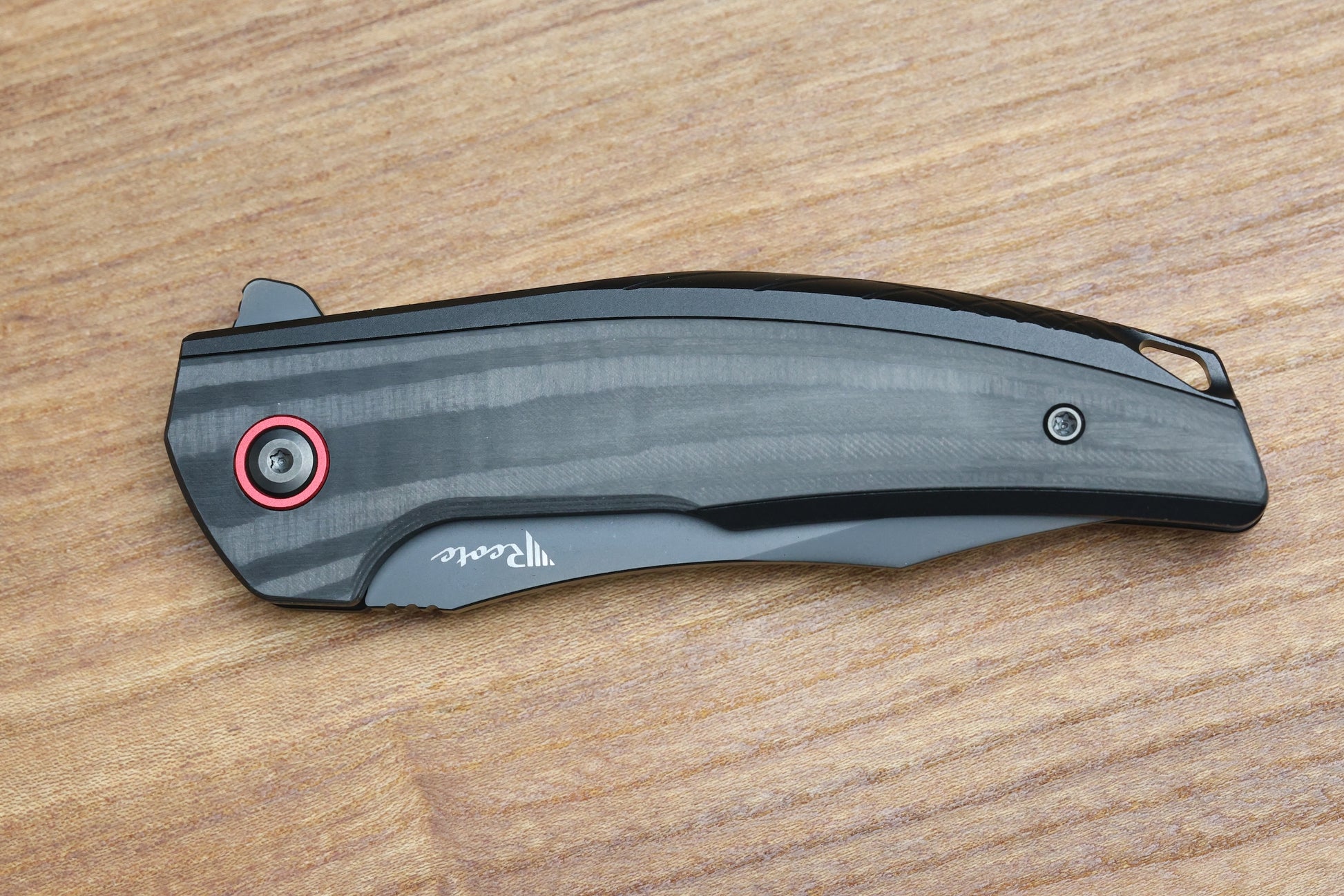 REATE KNIVES JACK JR. BLACK ALUMINUM INTEGRAL HANDLE W/ CARBON FIBER INLAY & RED PIVOT COLLAR & DLC S30V