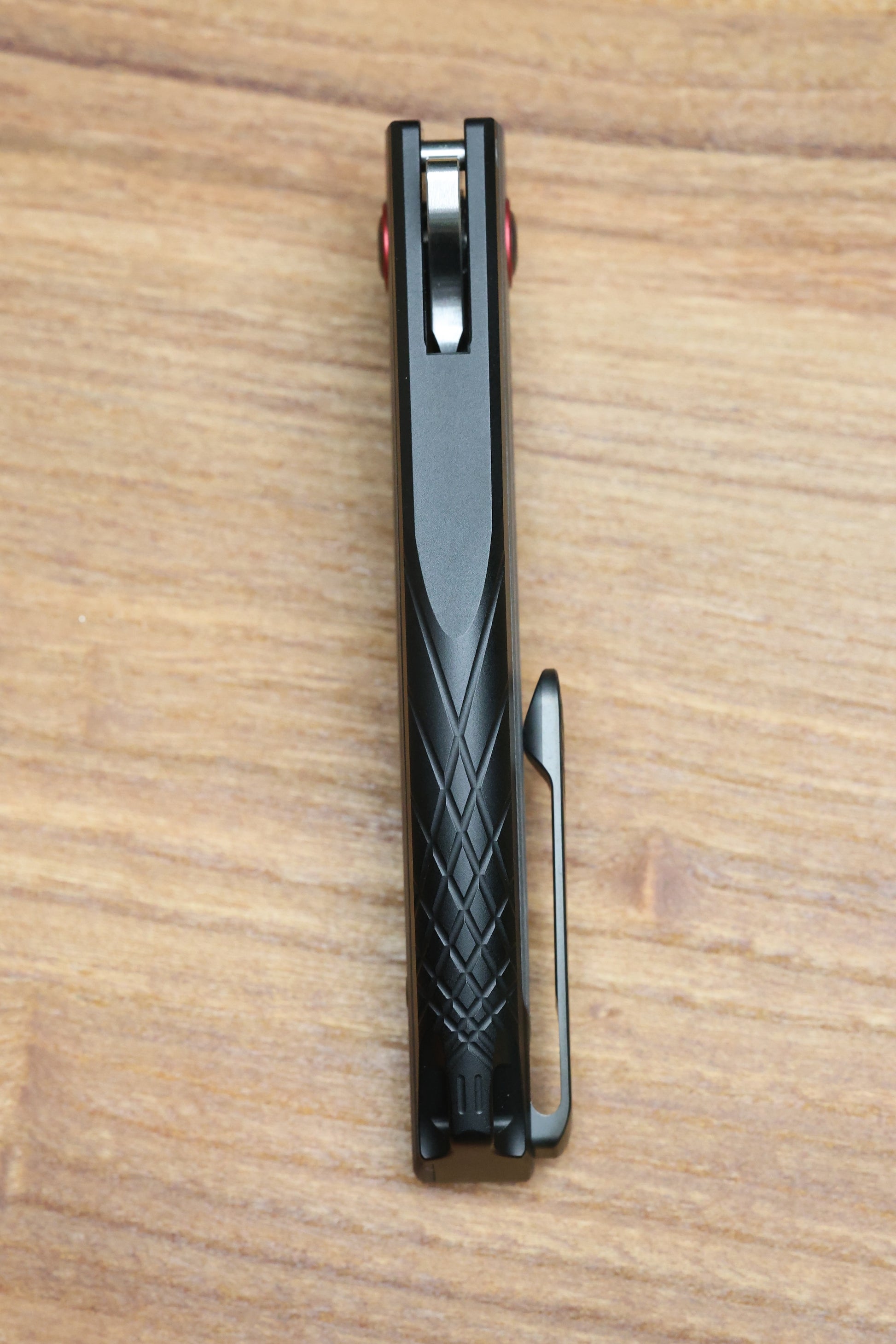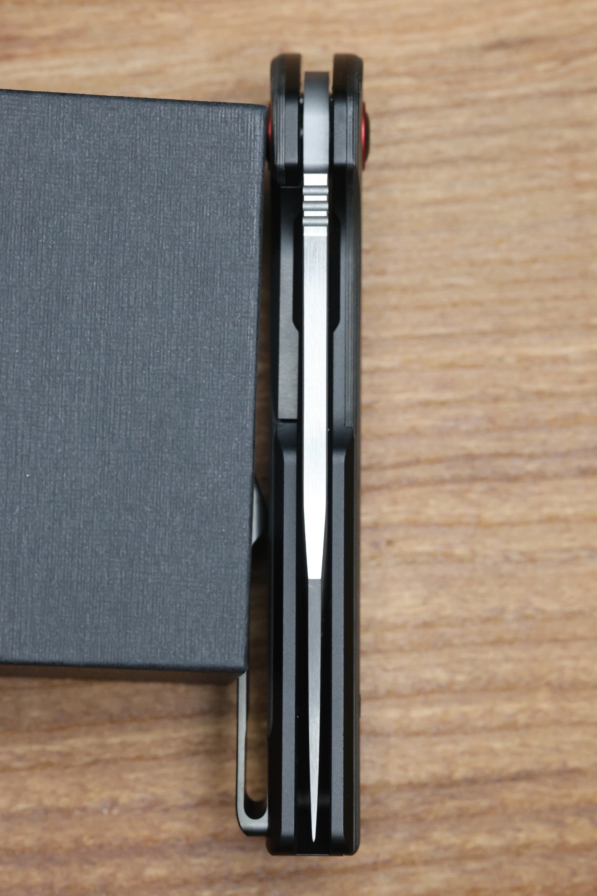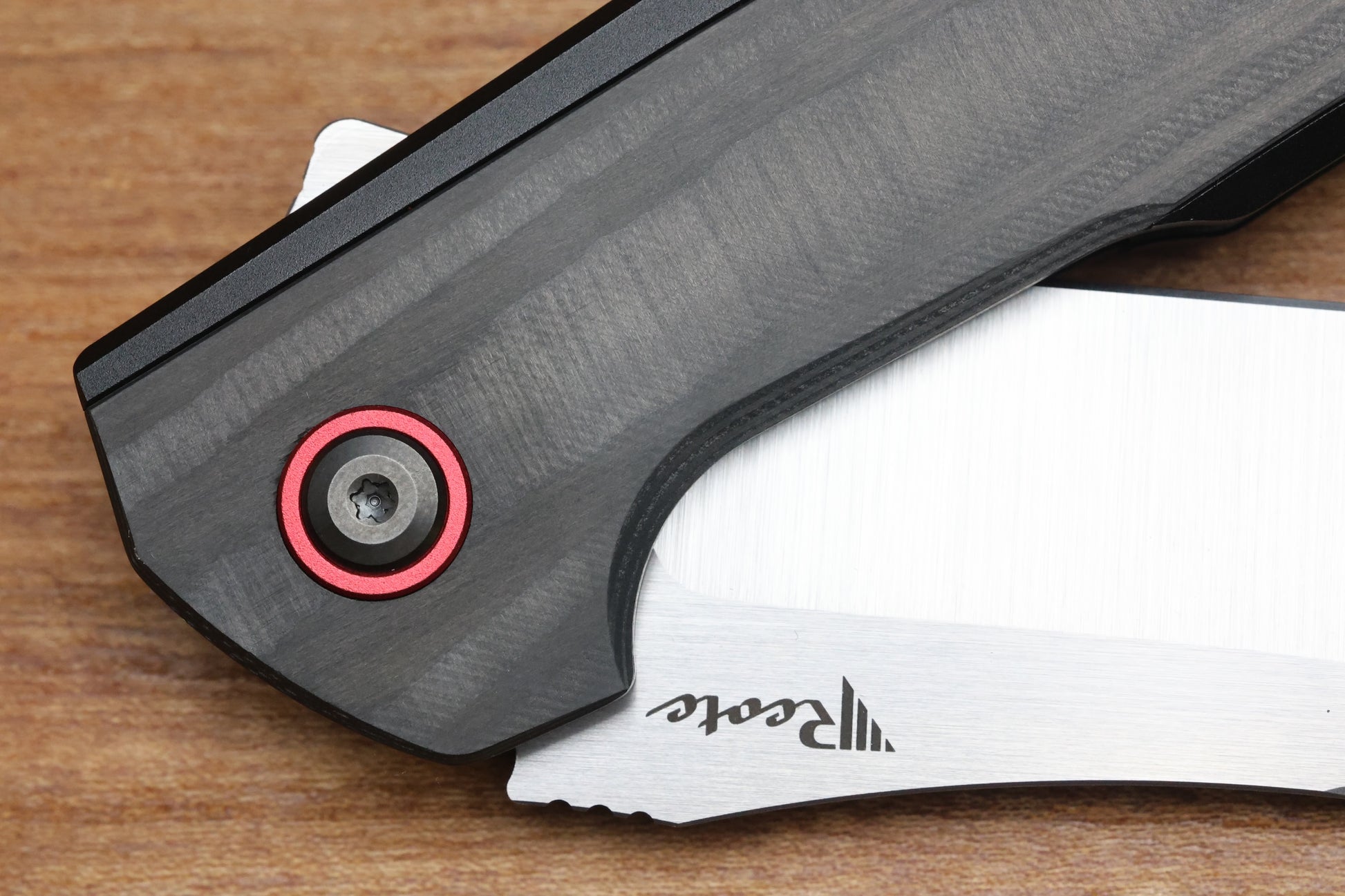REATE KNIVES JACK JR. BLACK ALUMINUM INTEGRAL HANDLE W/ CARBON FIBER INLAY & RED PIVOT COLLAR & SATIN S30V