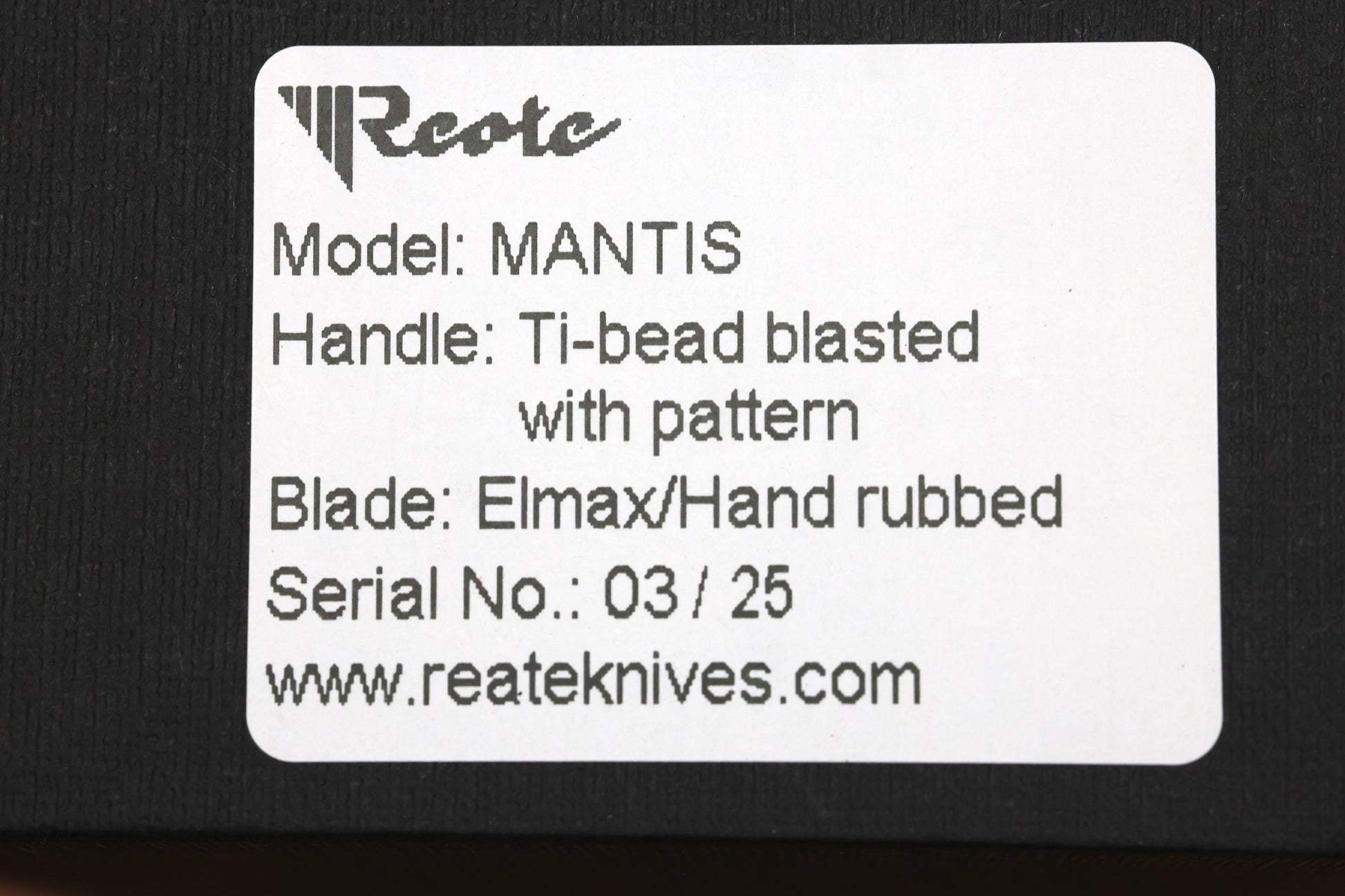 REATE KNIVES MANTIS - MILLED TITANIUM ZIRCUTI ACCENTS - HAND SATIN ELMAX BLADE