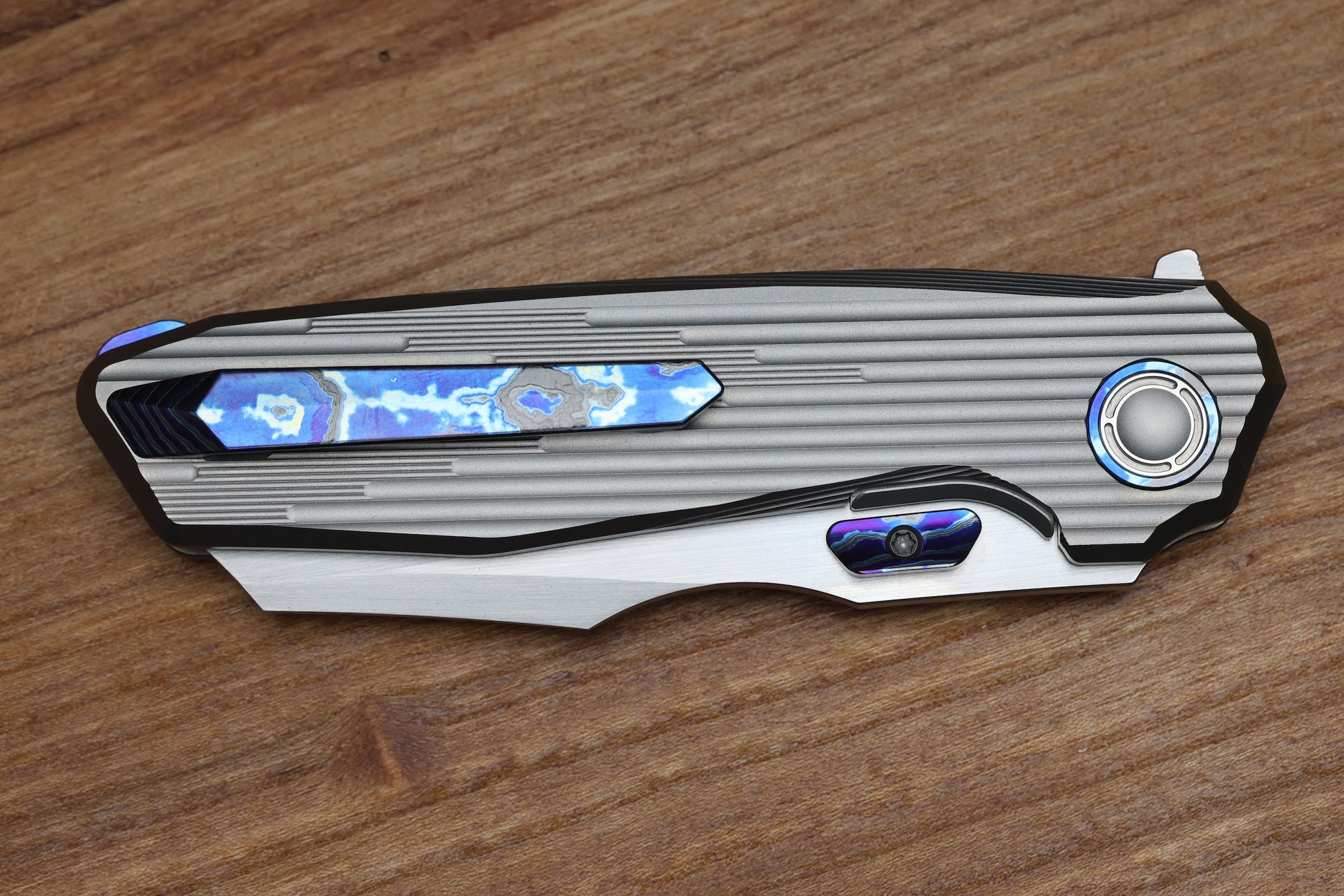 - Reate / Alvin Lee :Mantis ( Milled Titanium Handle , Zircu-Ti Accent, Elmax Hand Satin Blade )