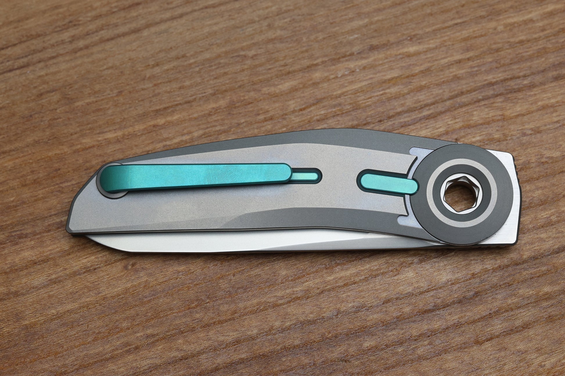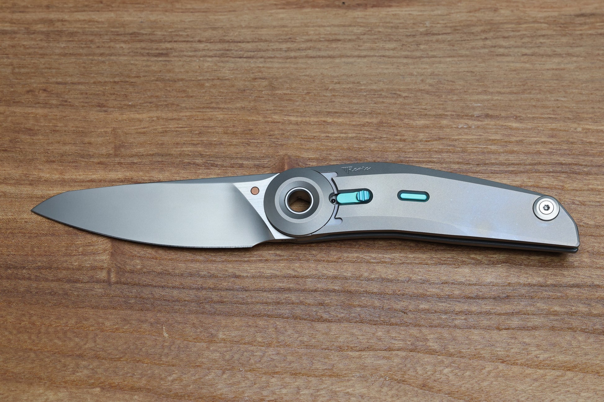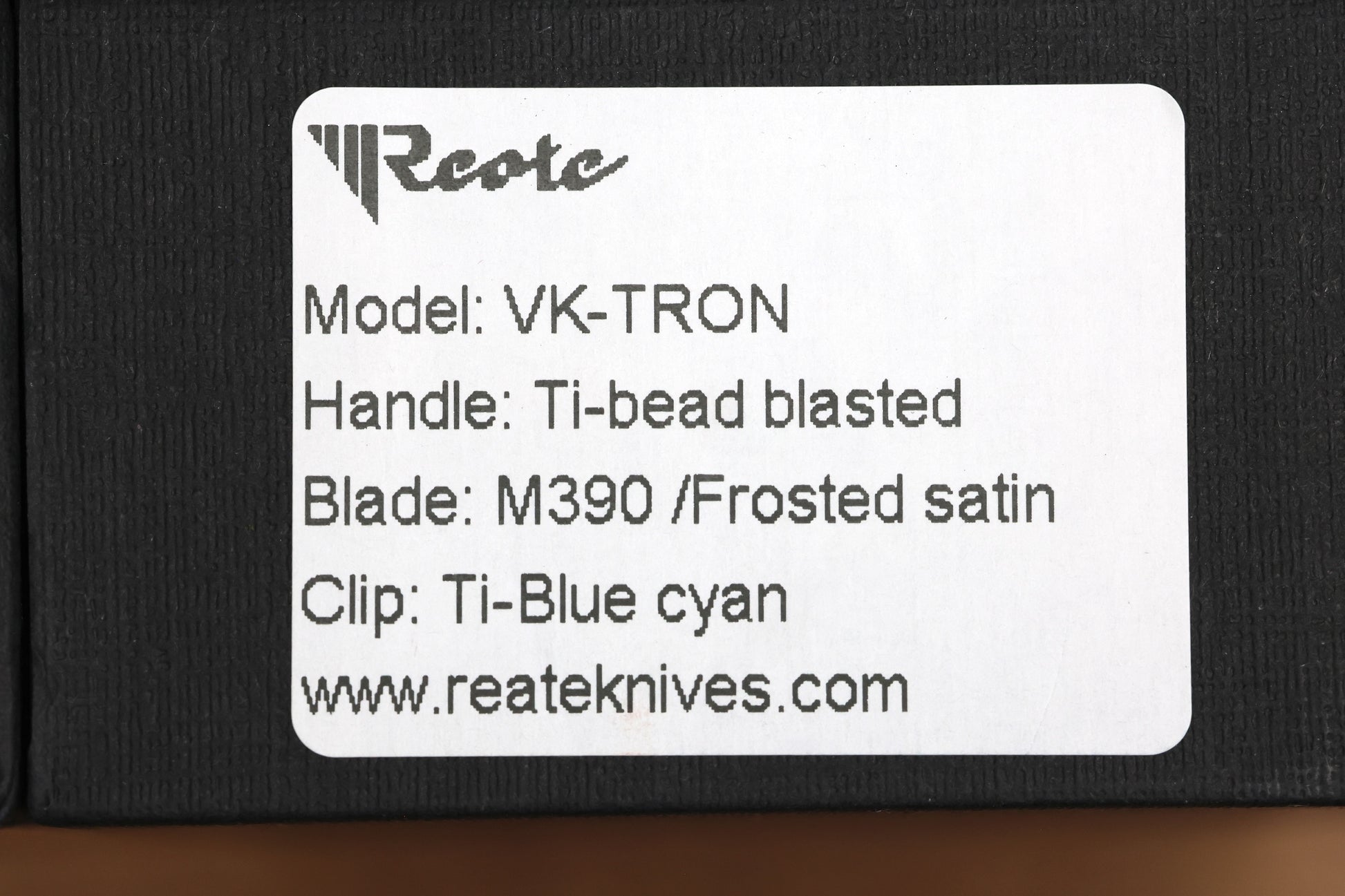 REATE KNIVES VULPEX VK TRON- TITANIUM BEAD BLAST W/CYAN BLUE ACCENTS & M390 BLADE