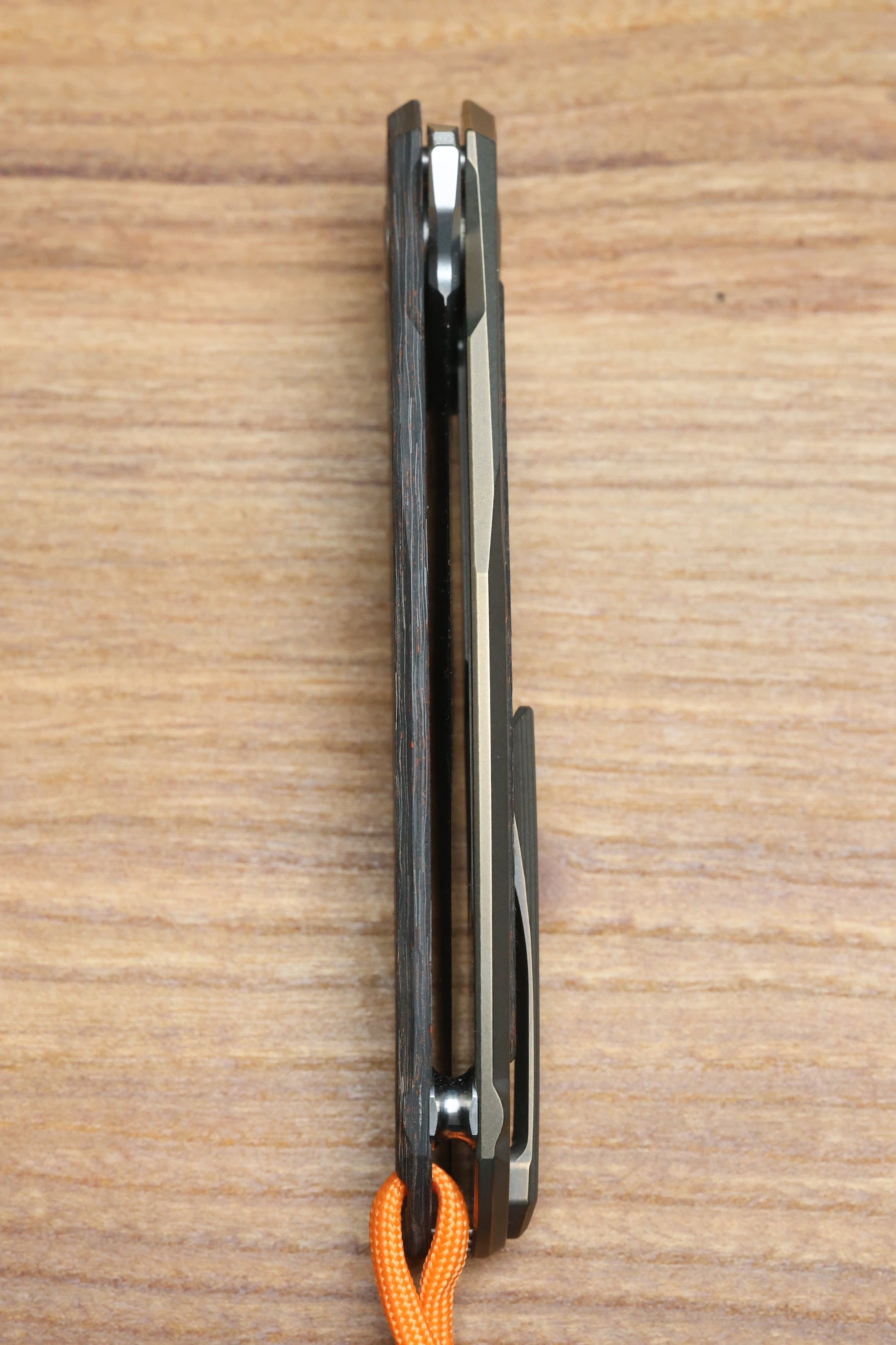 - Stonewashed/Bronze anodized Titanium frame lock handle scales