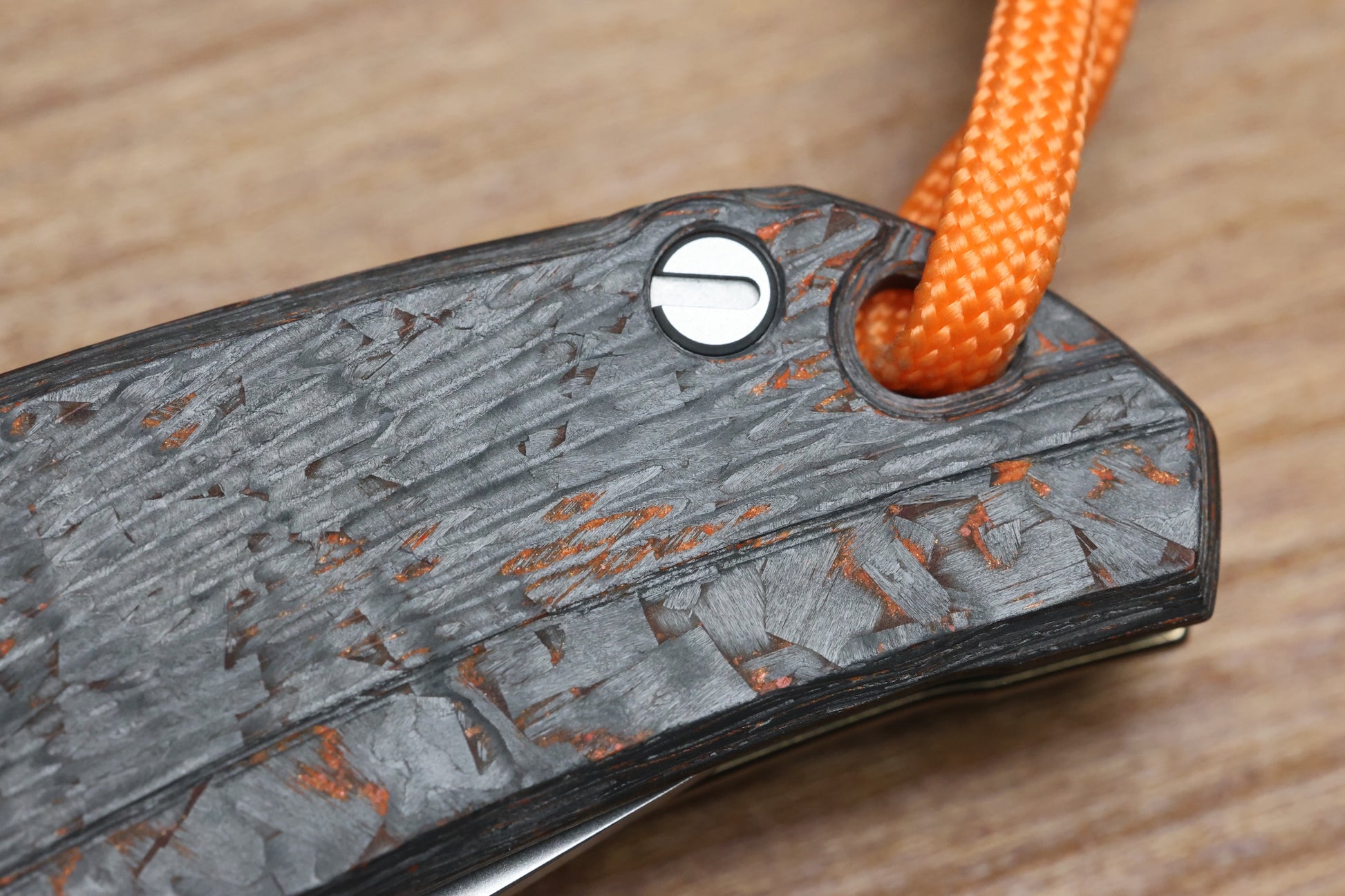 - Lanyard hole on presentation scale with Orange lanyard and Bronze anodized Titanium Pumpkin Pivot bead